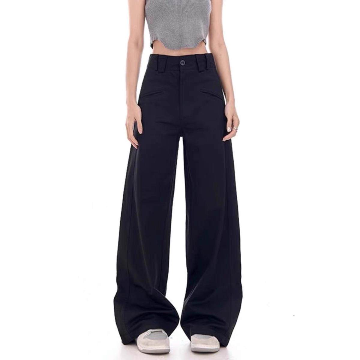 仔仔时尚女装秋季新款梨型身材八字口袋设计显瘦垂感阔腿裤西装裤