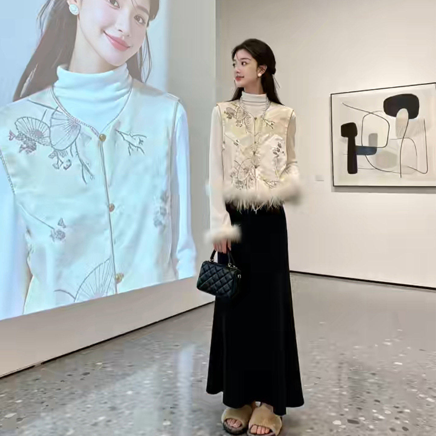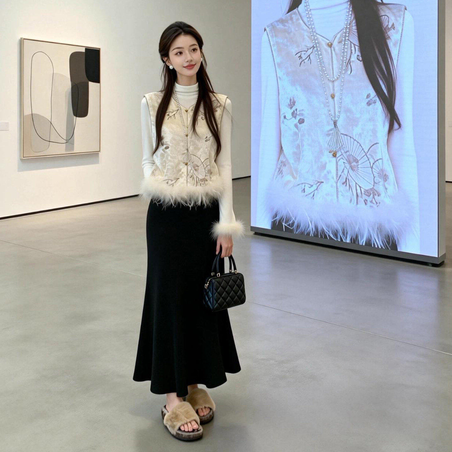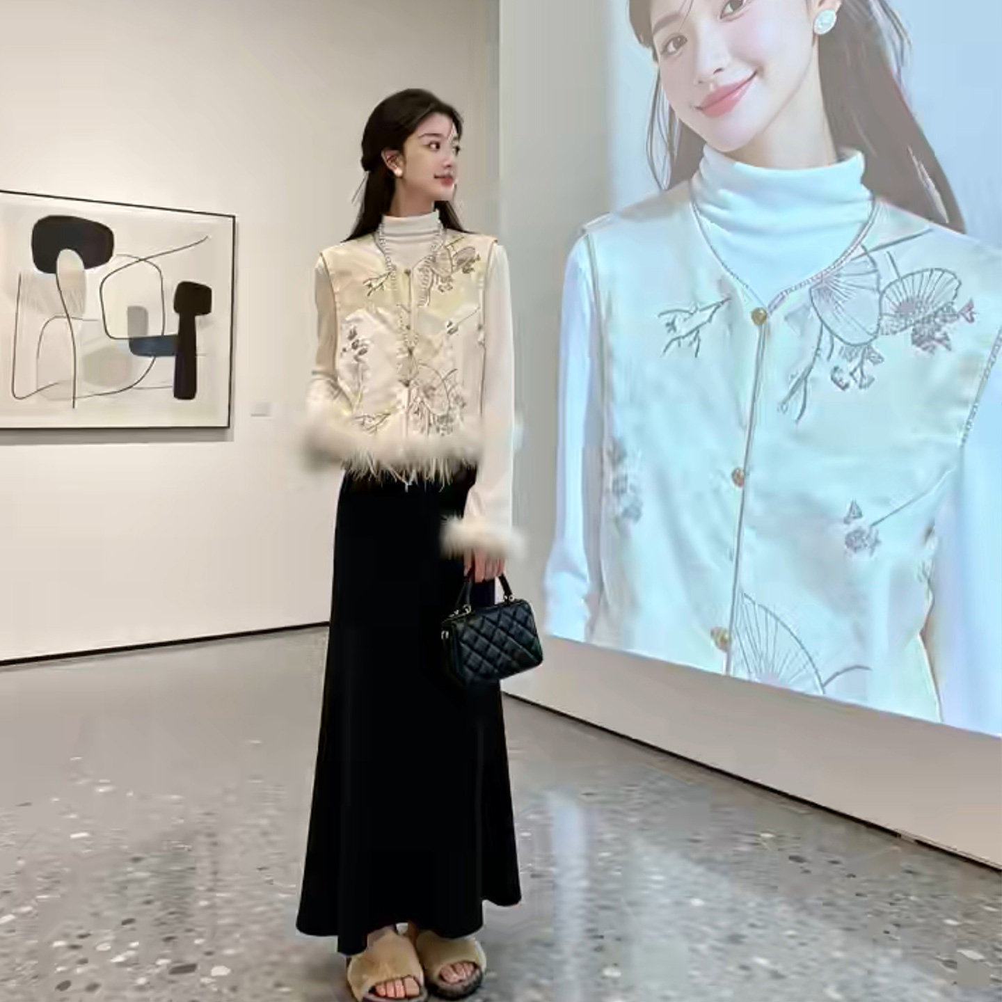 新中式国风复古盘扣马甲轻奢高级感穿搭一整套旗袍洋装套装冬季