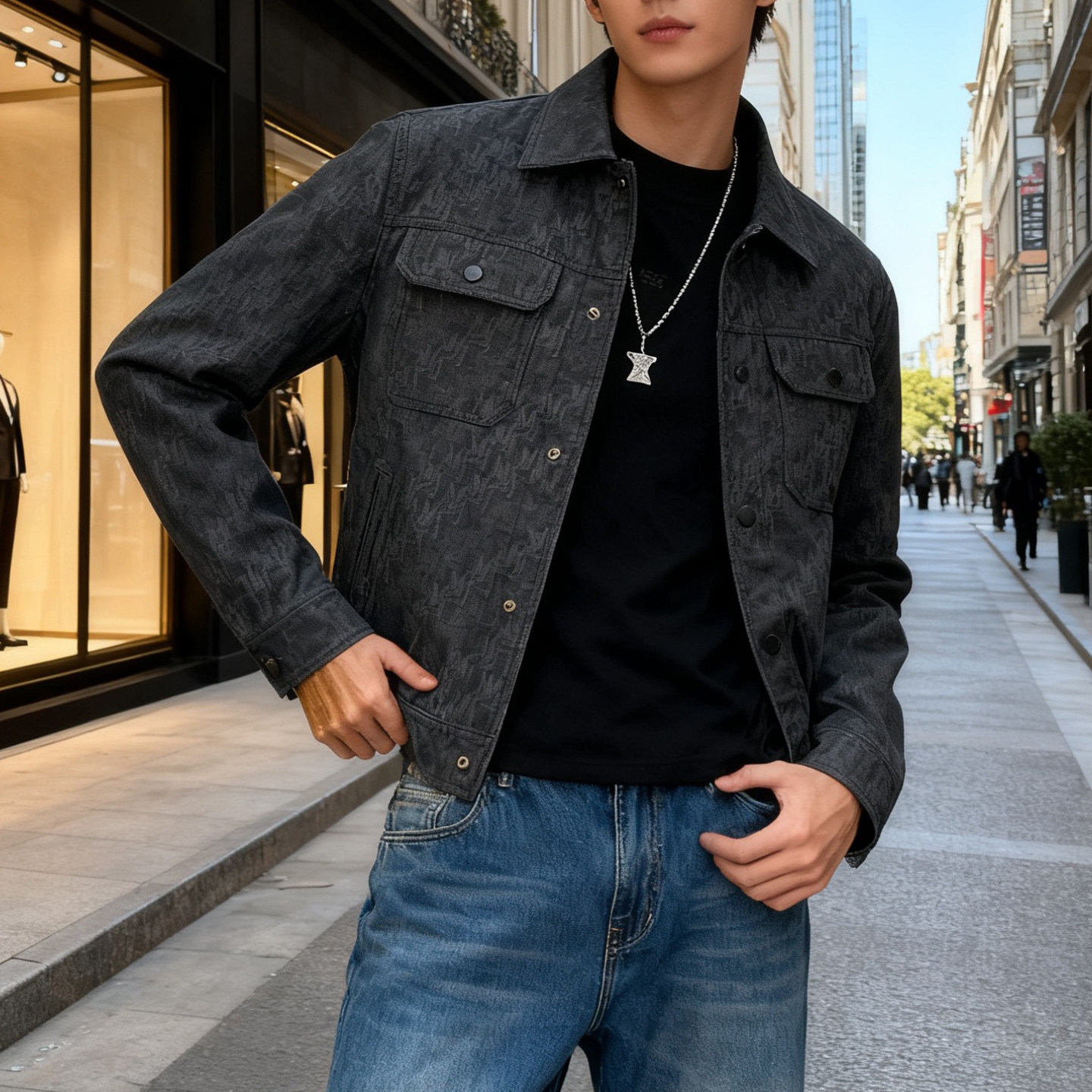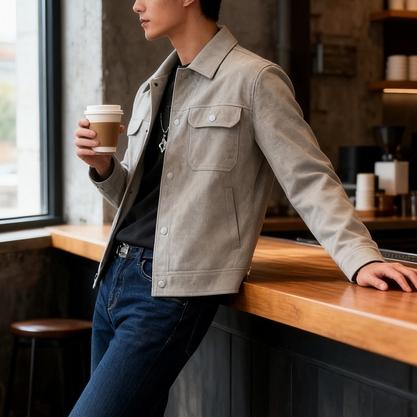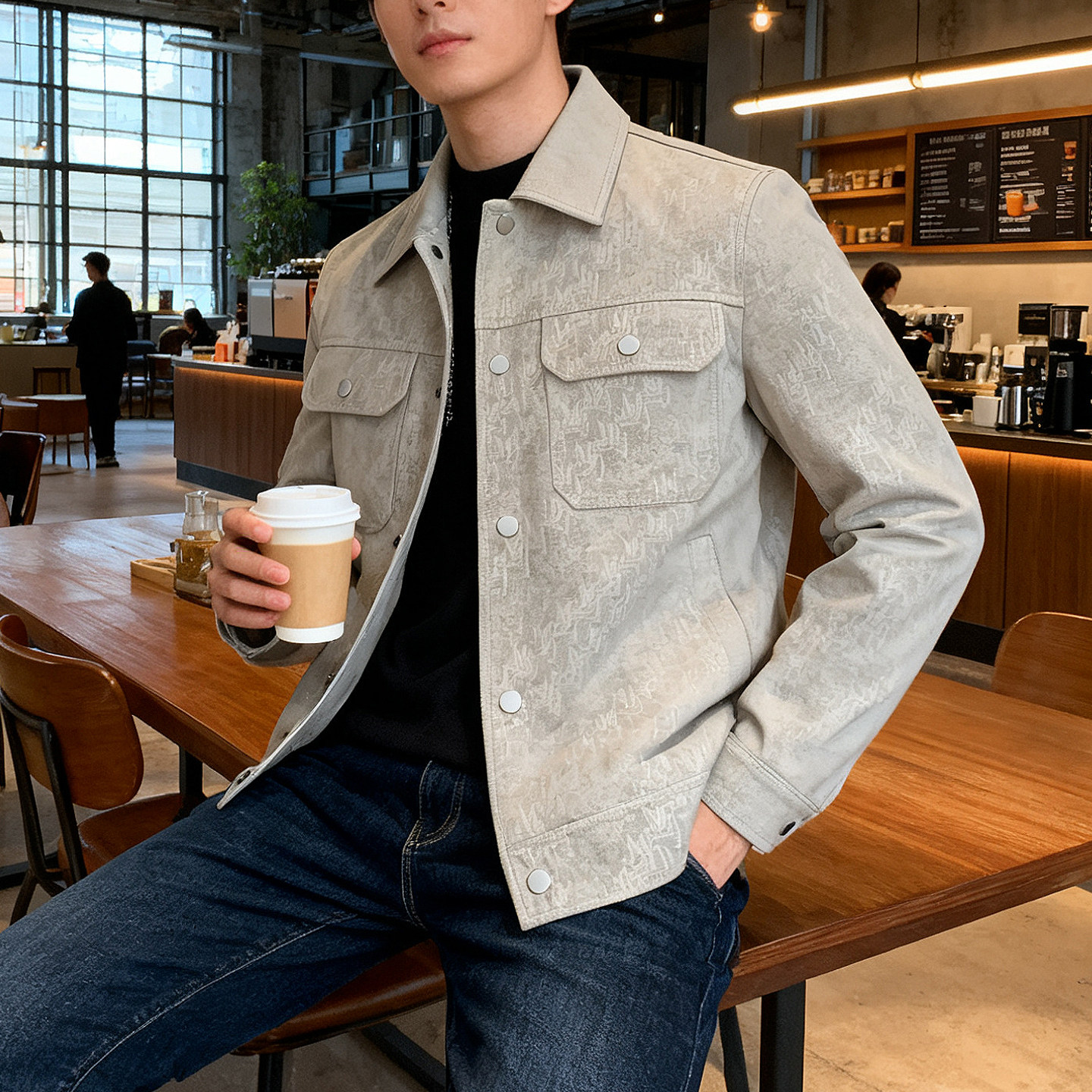25秋冬新款皮衣夹克男士休闲高级感加厚翻领美式复古潮牌百搭外套