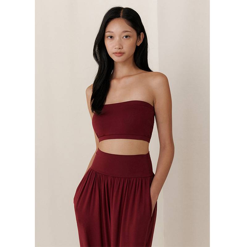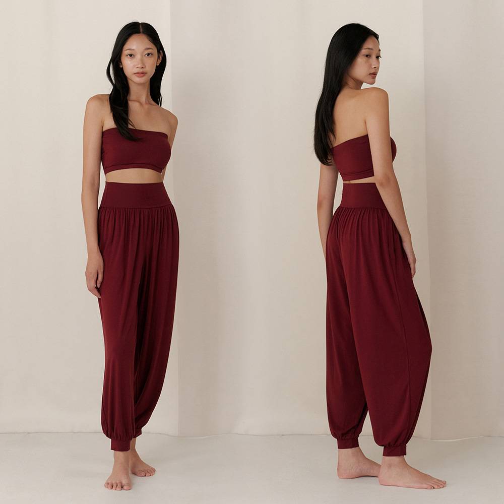 瑜伽抹胸长裤两件套无袖套头抹胸纯欲套装 宽松透气普拉提服套装