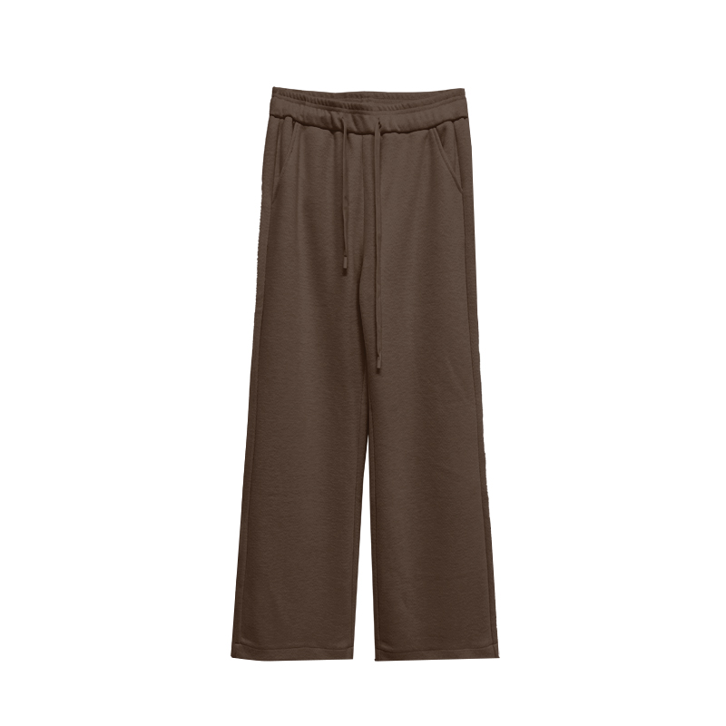 【橙庐】519139秋冬厚款人字纹松紧腰毛呢微喇直筒裤 女显瘦亲肤