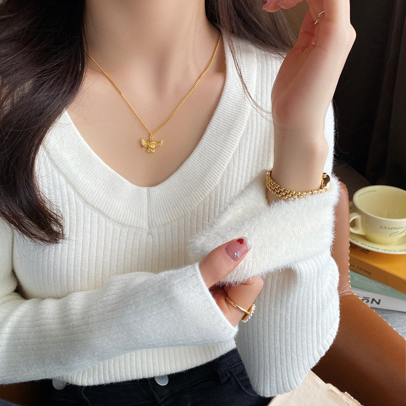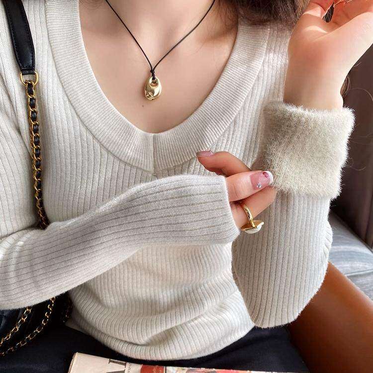 首页> 女装> 白色加绒加厚V领打底衫女2025秋冬季新款毛衣内搭高级感针织上衣