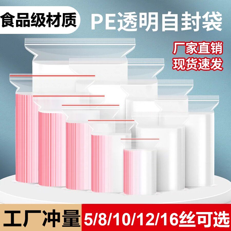 加厚透明自封袋食品级塑封口袋子保鲜收纳密封袋塑料PE大包装袋