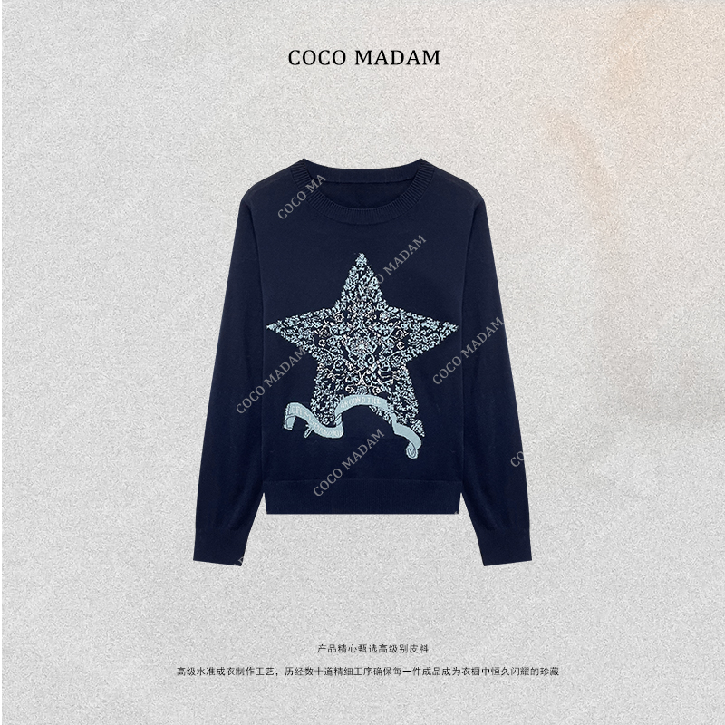 NIUNIU ·T-1436 套头款女时尚羊毛衫宽松休闲五角星图案