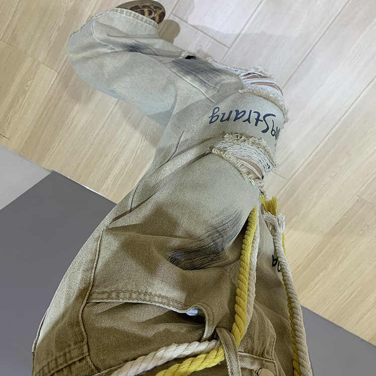 美式高街涂鸦破洞牛仔裤女夏季新款印花设计宽松直筒裤宽松拖地裤