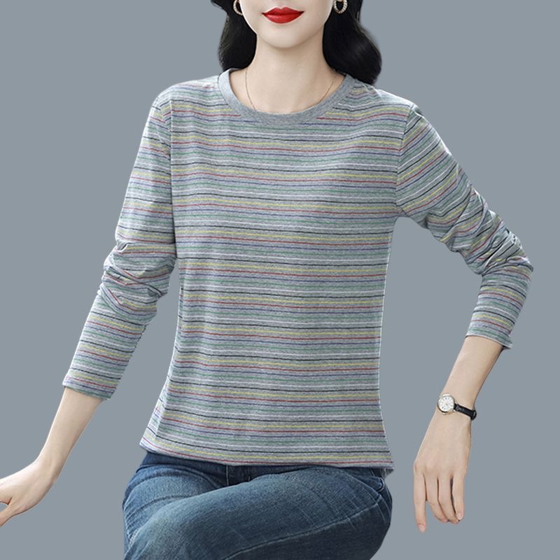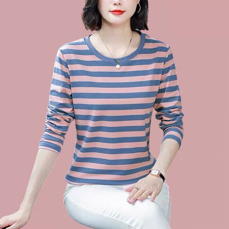 爆款纯棉长袖t恤女士大码宽松外穿打底衫秋衣显瘦遮肚减龄百搭女