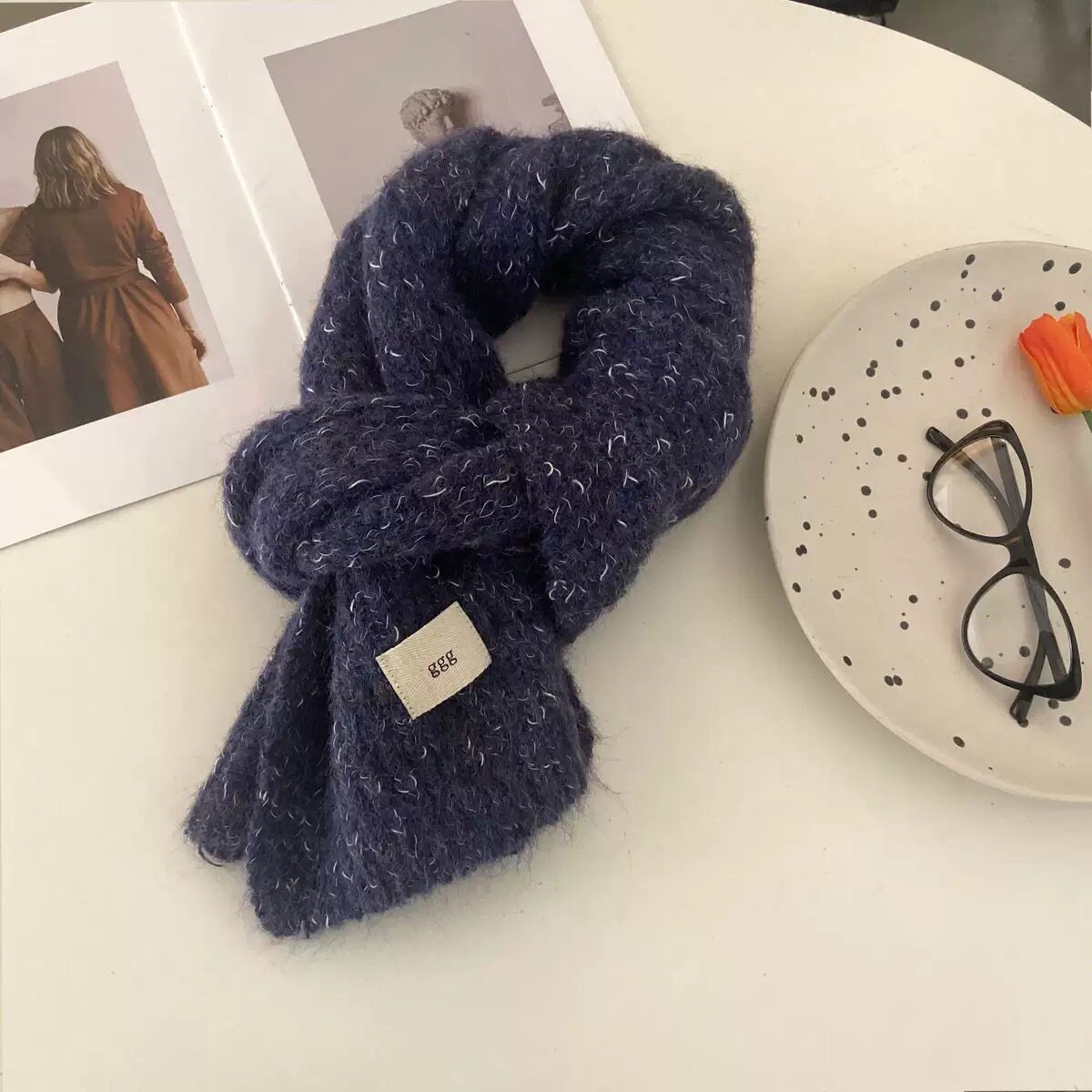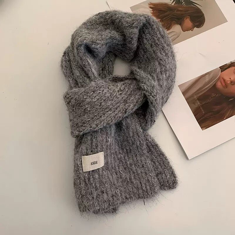 韩系新款保暖围巾女秋冬季高级感法式针织纯色百搭女厚款森系围巾