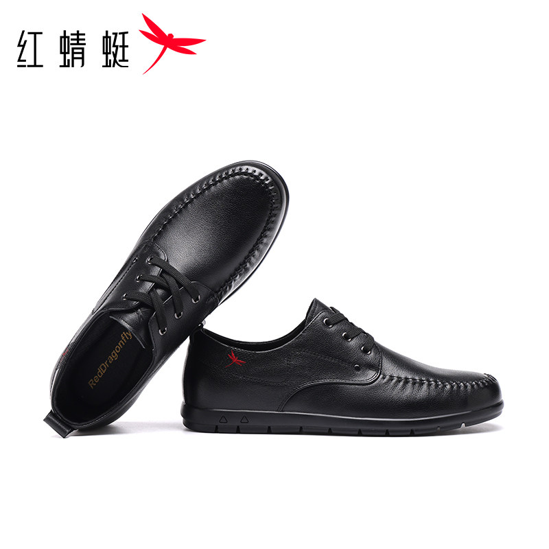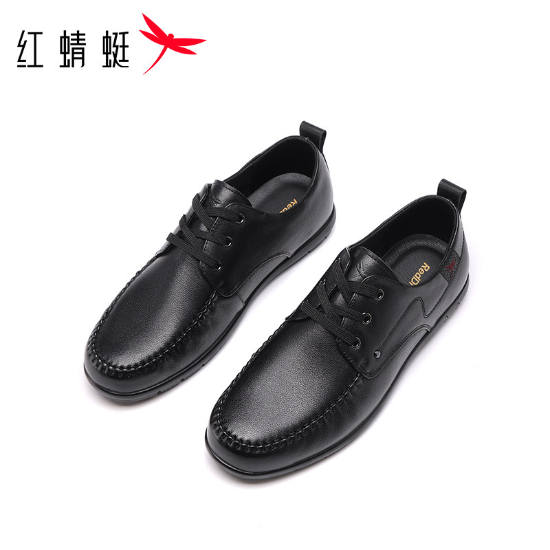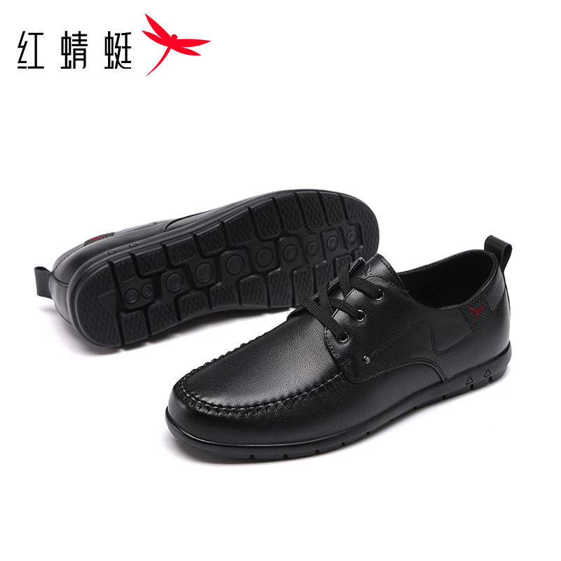 红蜻蜓商务休闲系带皮鞋男牛皮驾车软底通勤男士鞋防滑透气轻便