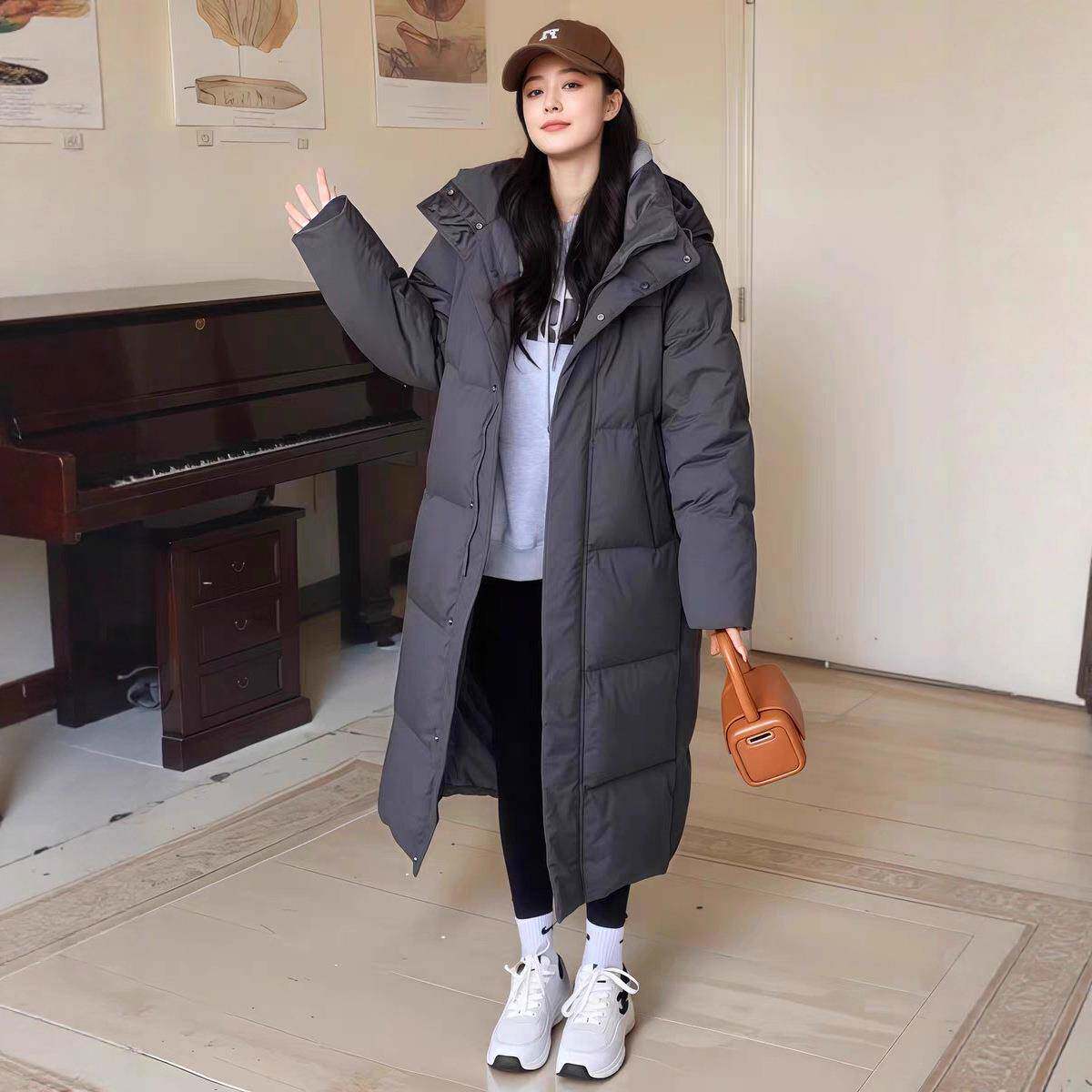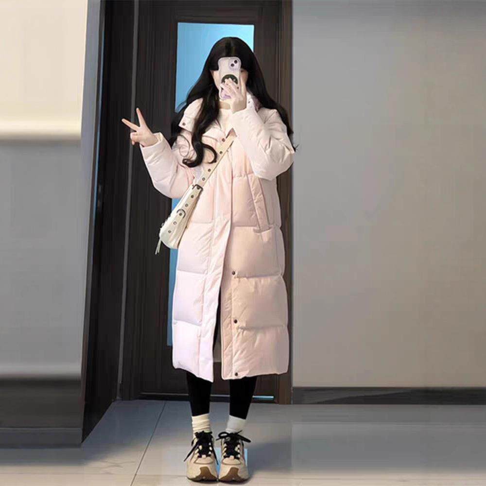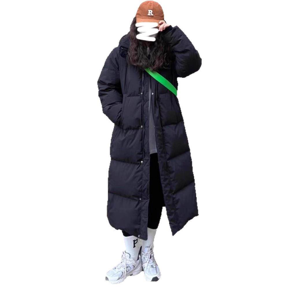 长款过膝中戏羽绒服女2025冬季新款白鸭绒加厚学院风情侣宽松外套