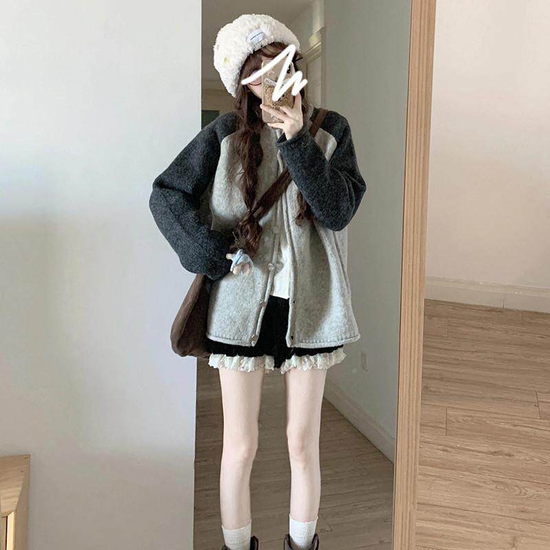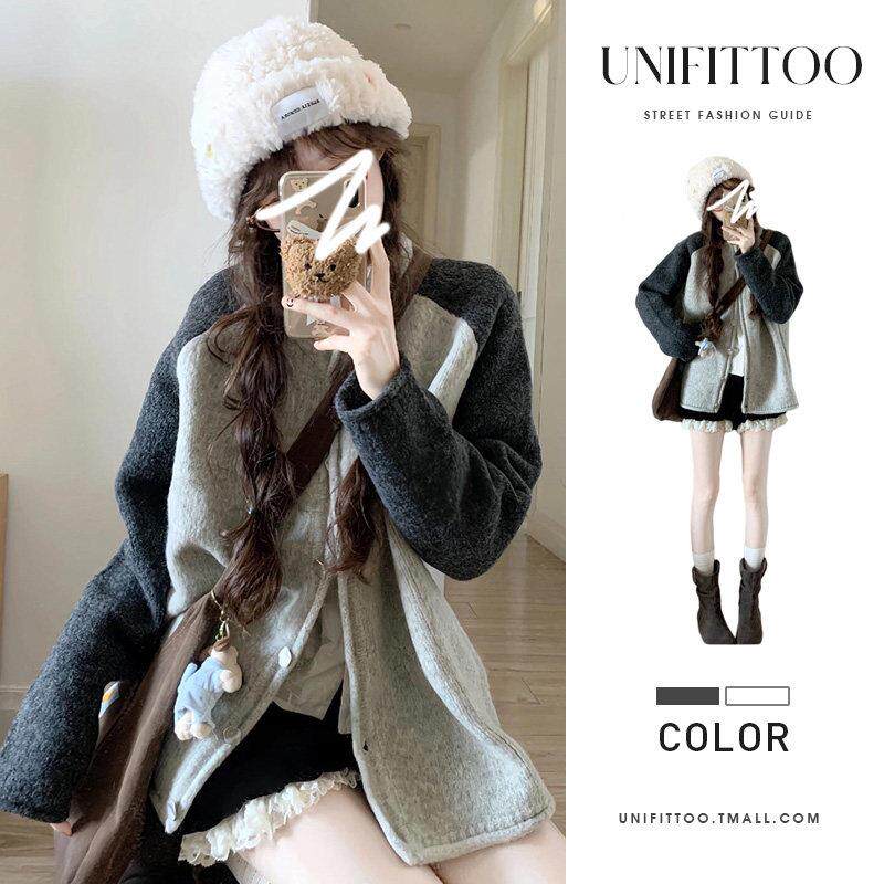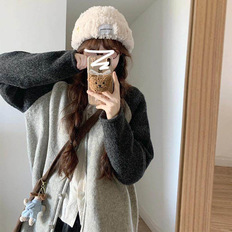 色针织衣款开衫外套女2025新毛高级感穿搭CAM46557小个子慵灰懒风