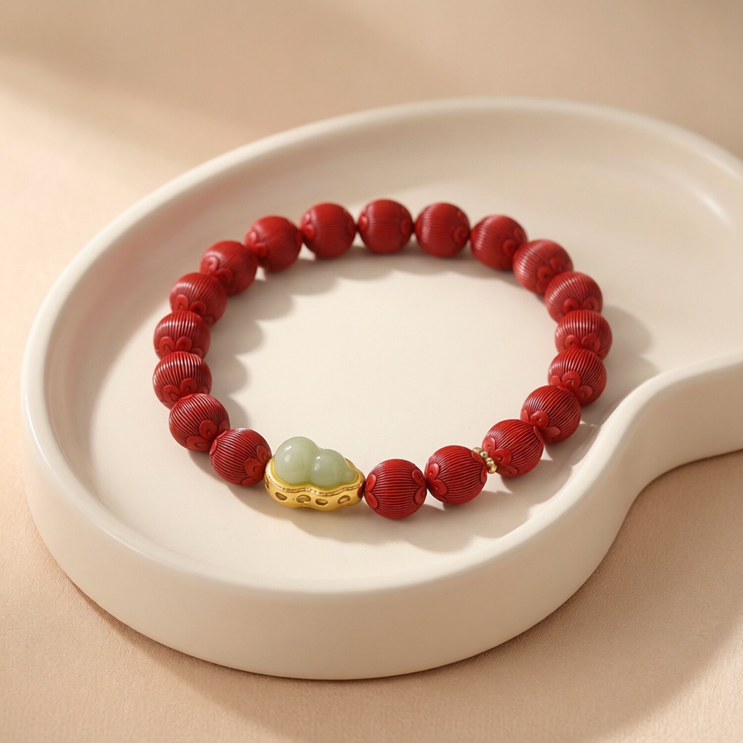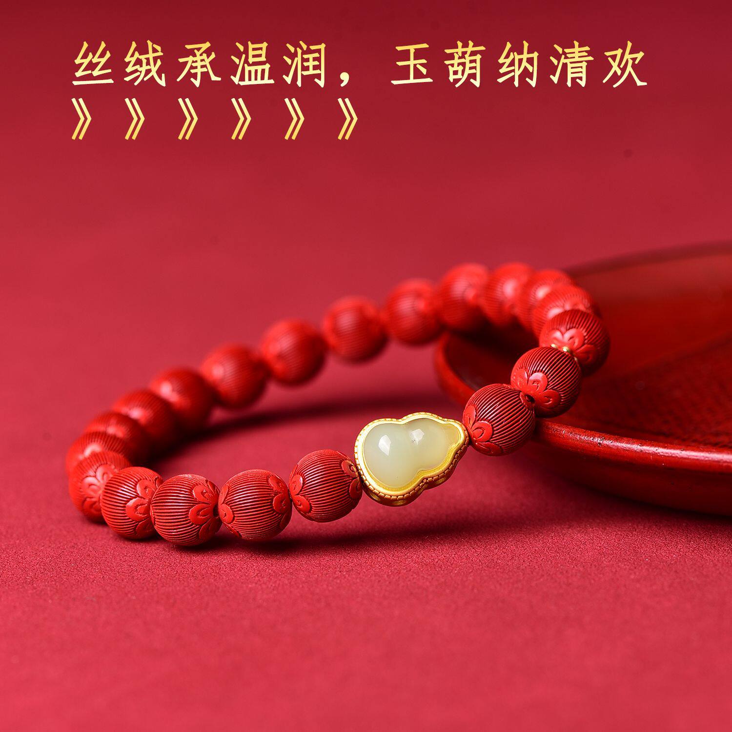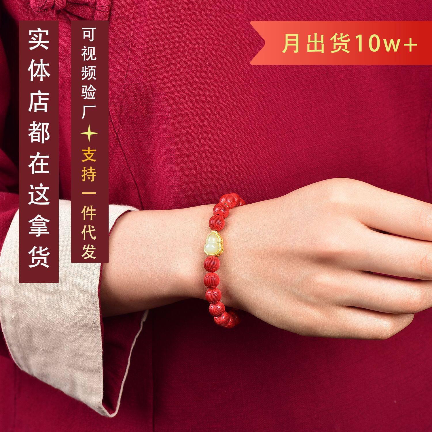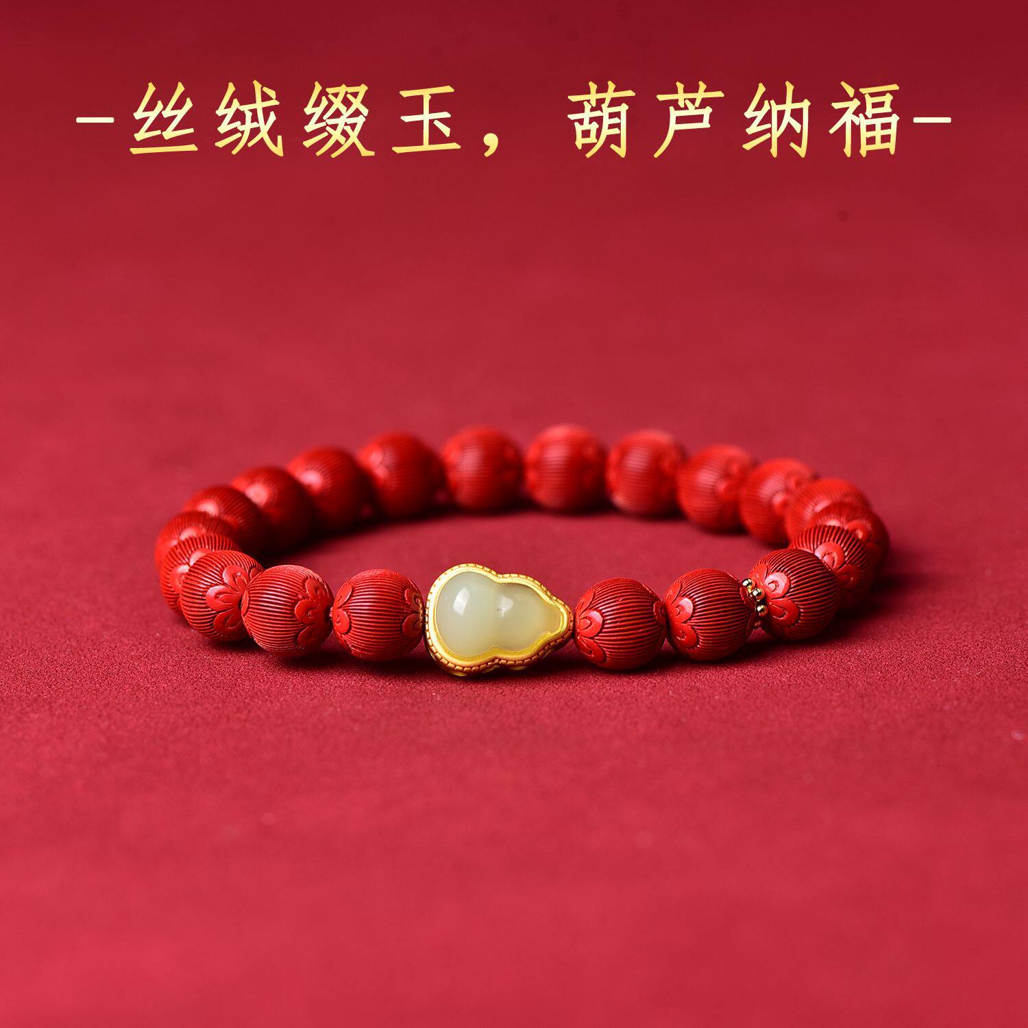 高含量朱砂辰砂丝绒珠葫芦男女新款铜镀件手饰复古手链手串新中式