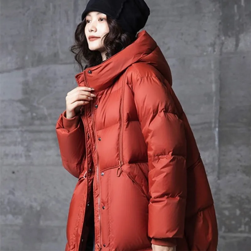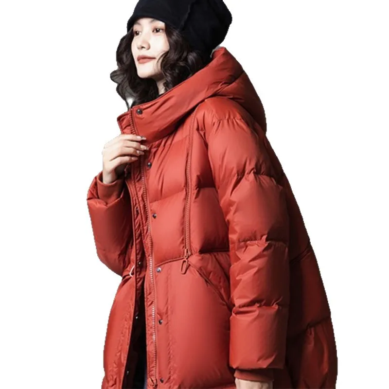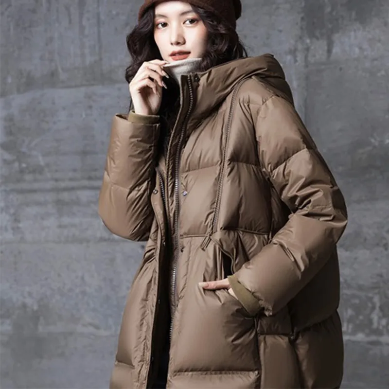 反季秋冬款中长款宽松大码修身显瘦羽绒服女连帽休闲A版外套