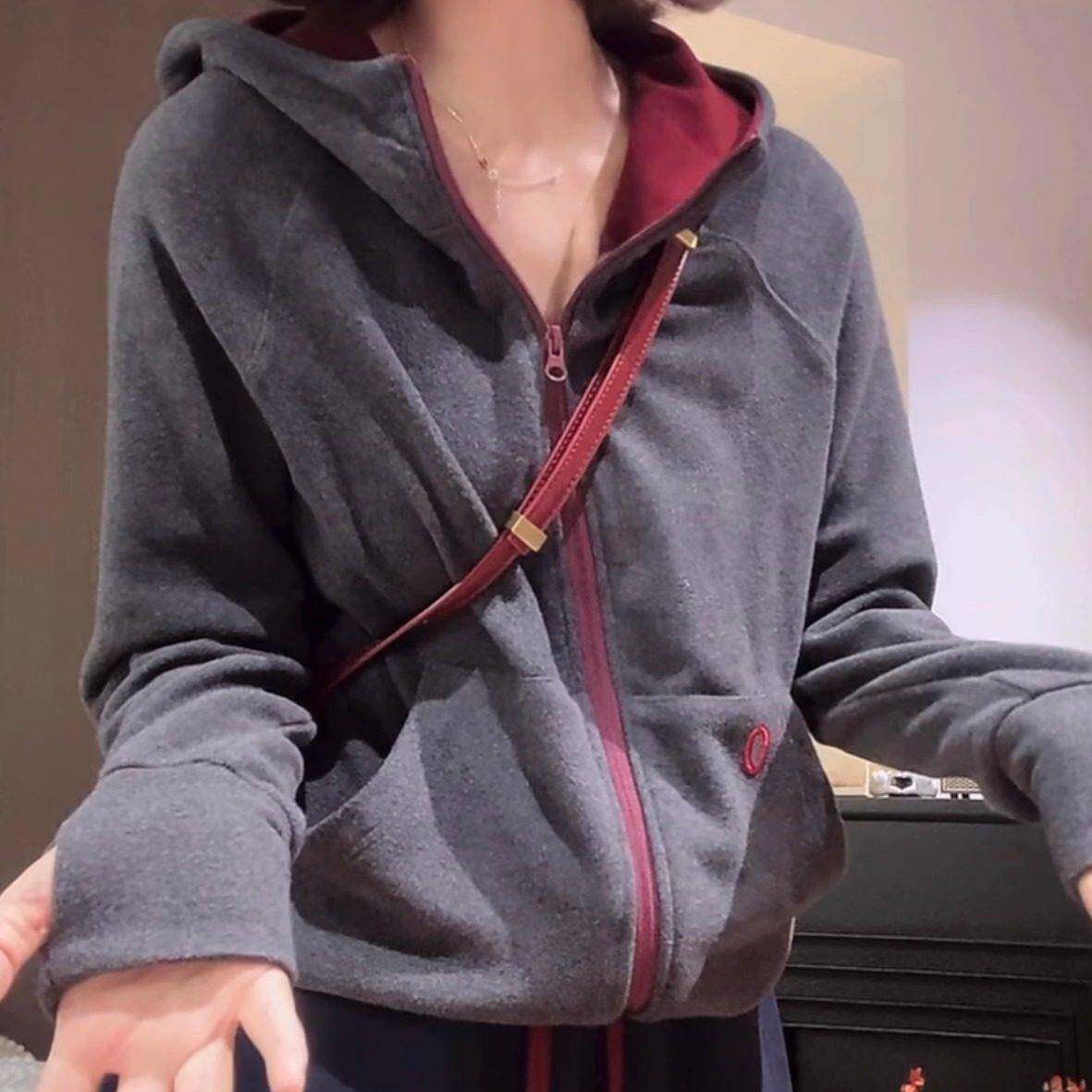 美式双面绒连帽卫开女2024新款潮流衣时尚宽百搭显松瘦外ZOA衫套