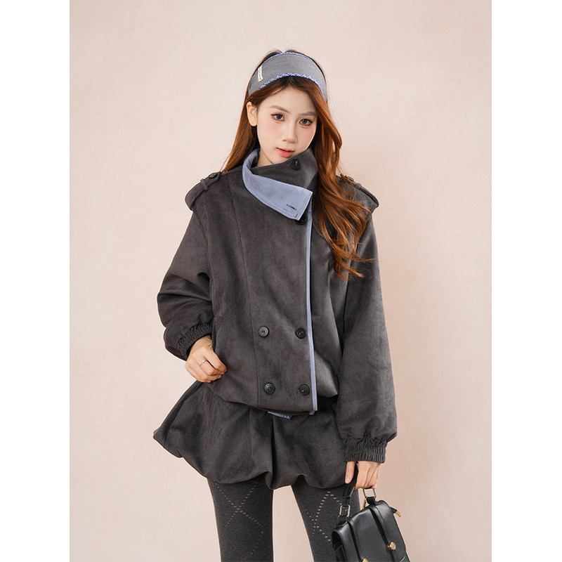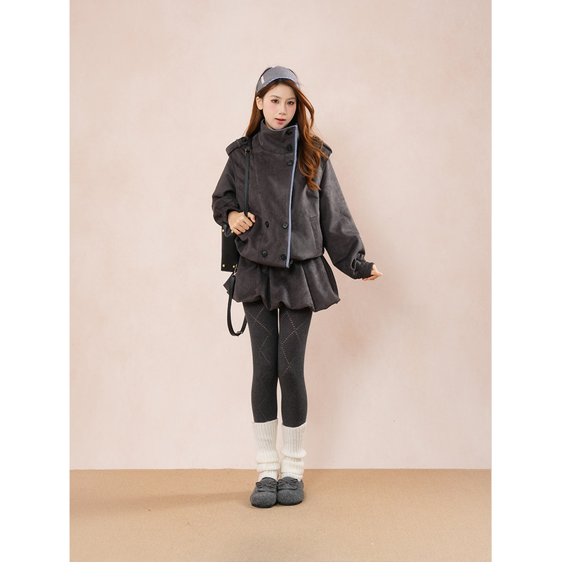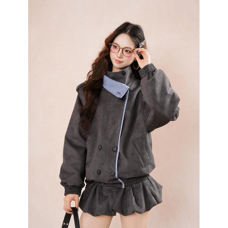 【巴恩时区】法式高级感套装冬季新款双排扣外套花苞半身裙两件套