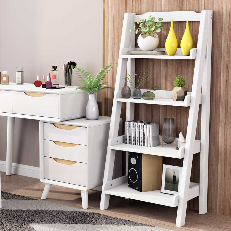 实木梯形多层置物书架阶梯式小型北欧卧室客厅阳台落地白色收纳架