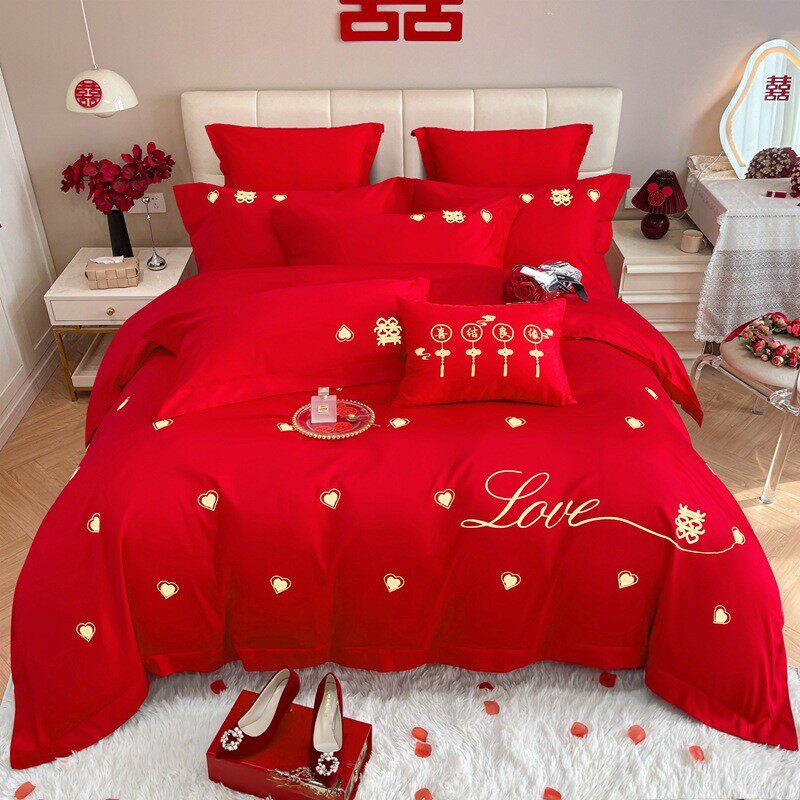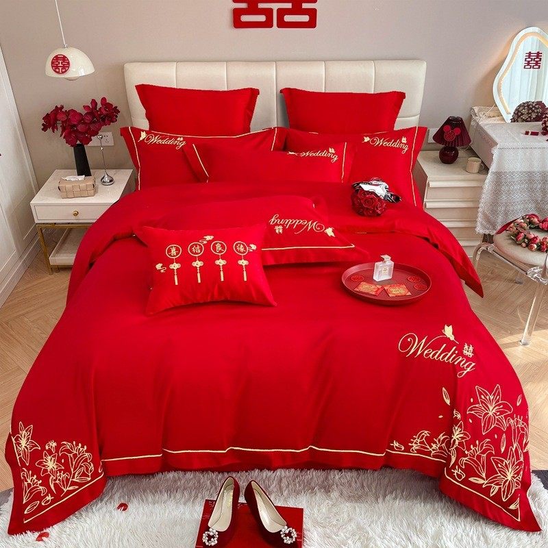 中式被套高端婚庆结婚床上用品四件套喜被大红色床单婚房婚嫁被罩