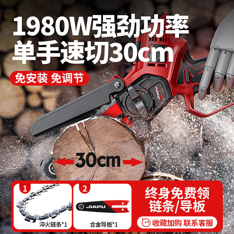 电锯家用小型手持充电式锂电电动锯单手链据柴户外砍树伐锯木神器