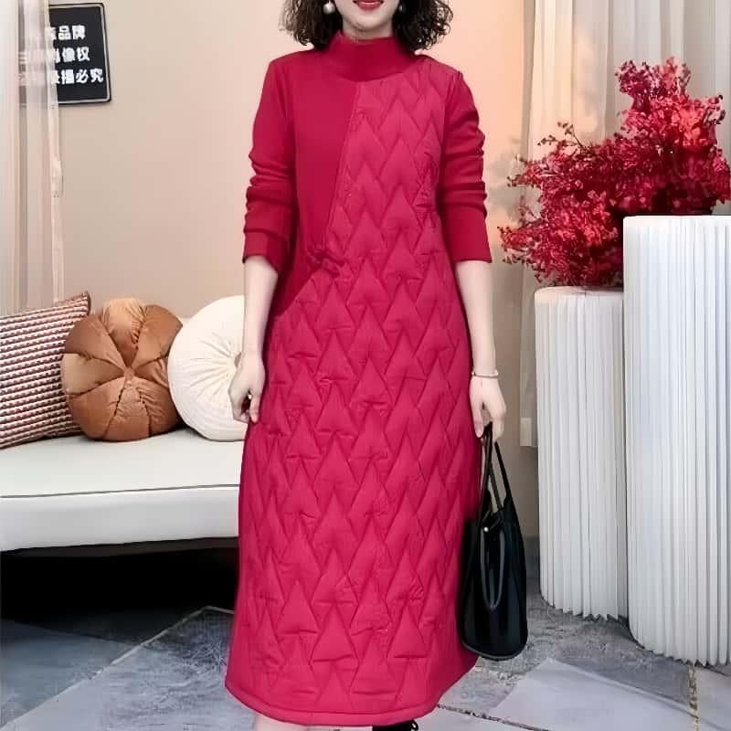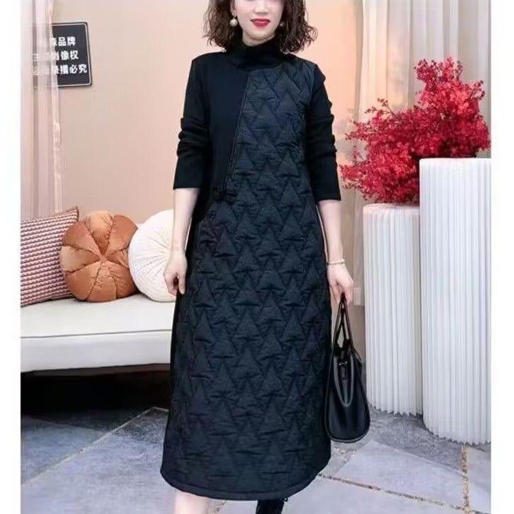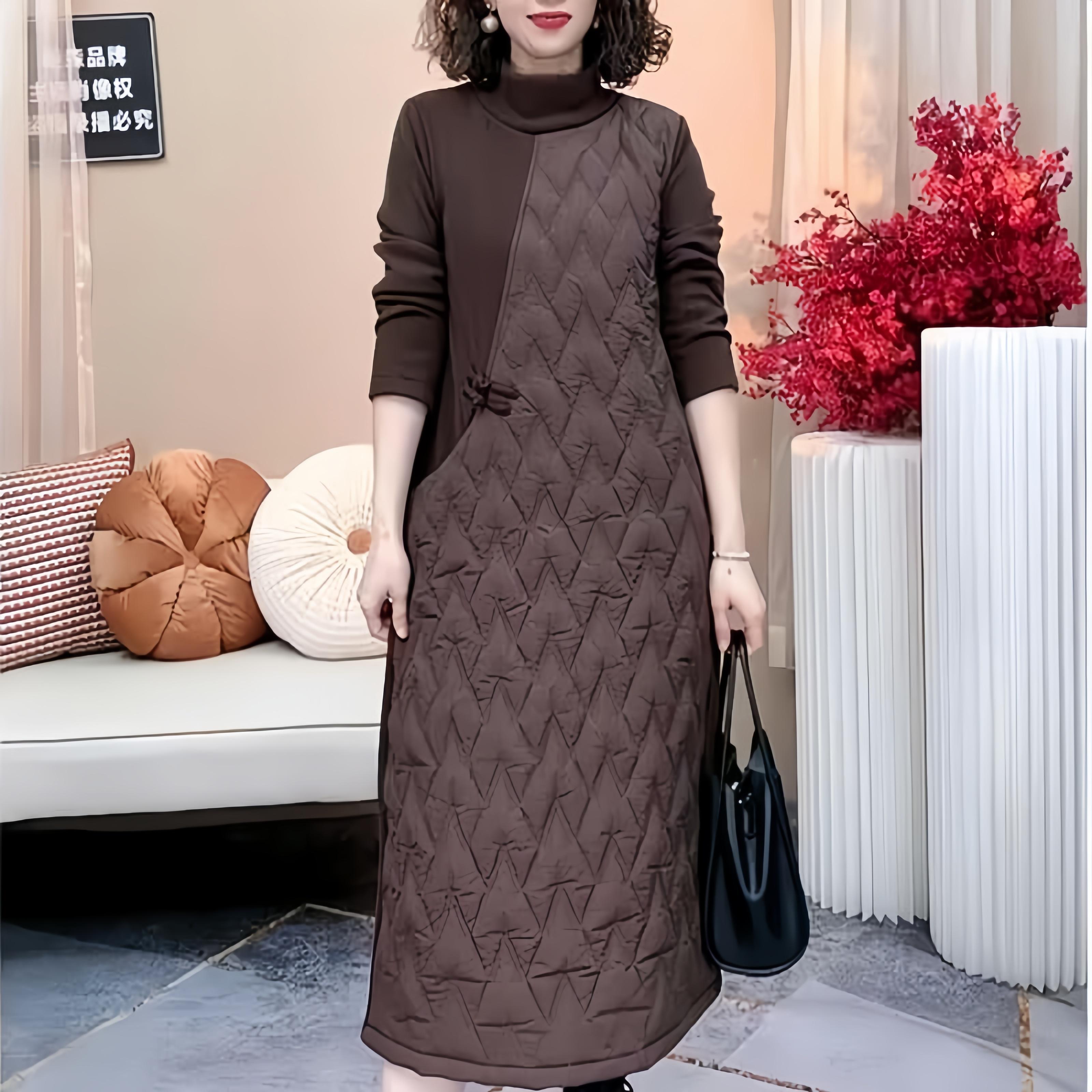 加绒加加厚保暖冬季连衣裙国风时尚气质宽松妈妈遮肉减龄女装裙子