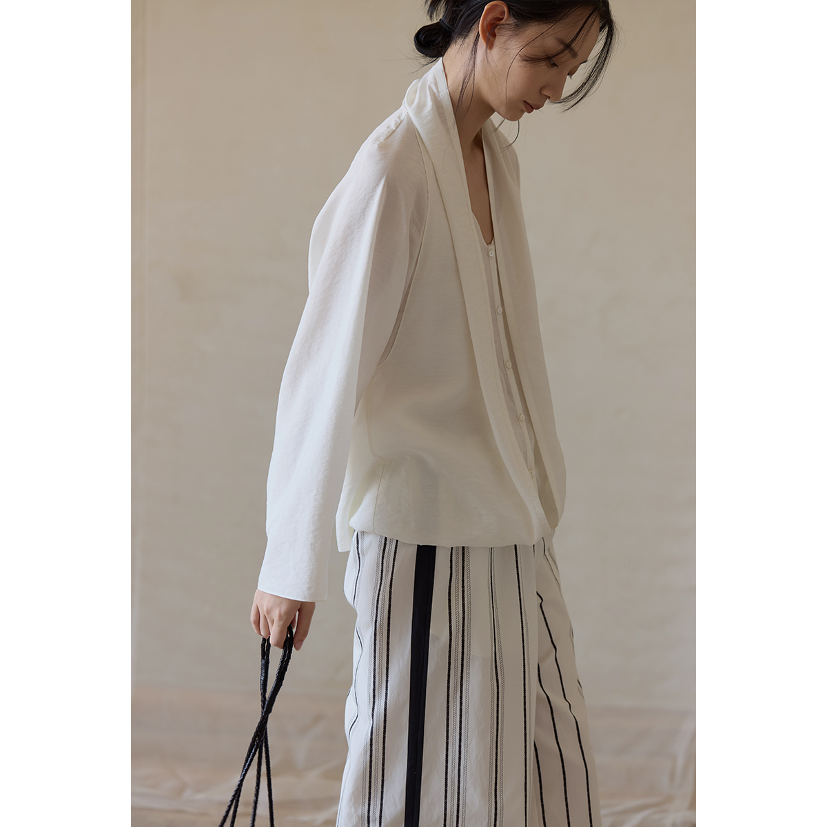 commuse memory 气质通勤 冷感皱白薄款松弛感围巾领开衫衬衣