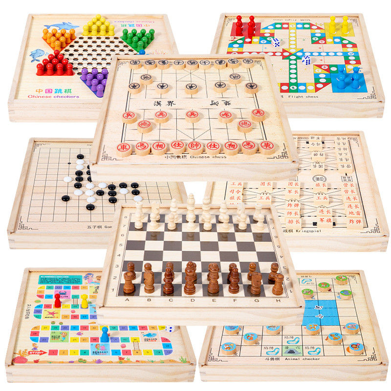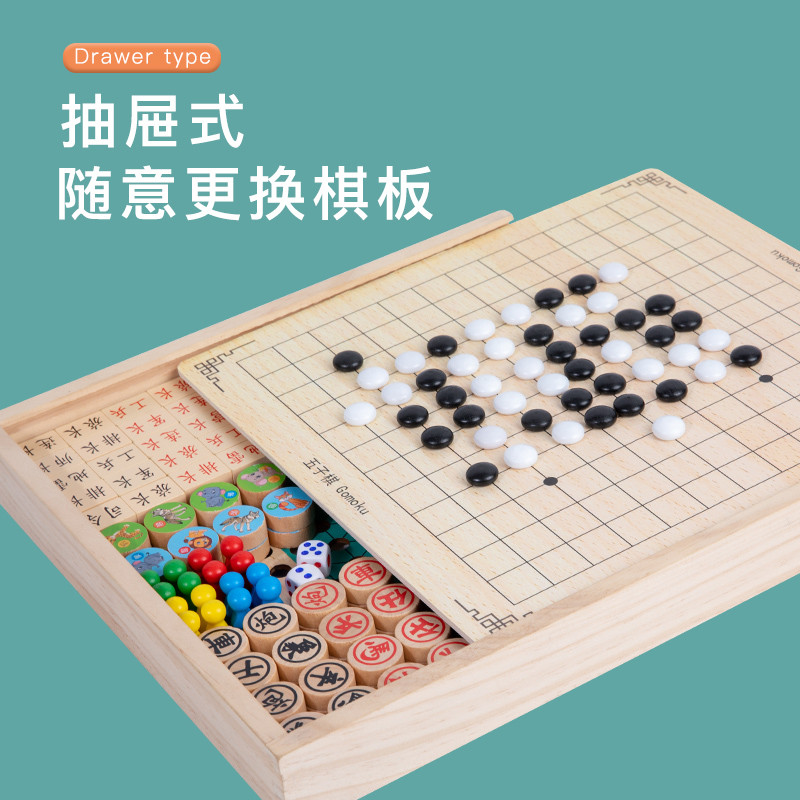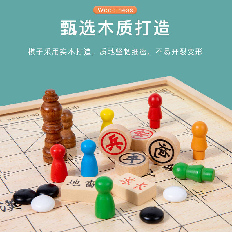 多合一跳棋飞行棋五子棋儿童学生益智游戏多功能棋盘木制礼物玩具