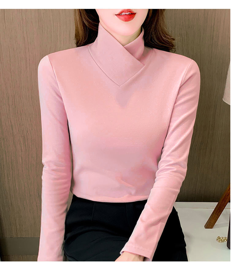 早秋加绒加厚双面德绒T恤女修身显瘦百搭洋气女士上衣长袖打底衫