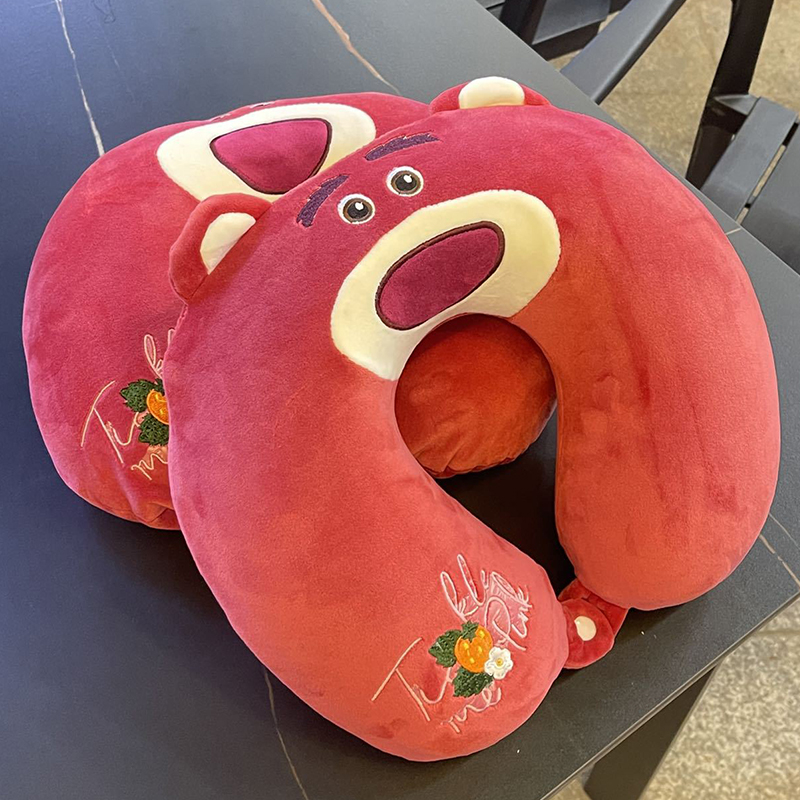 脖子U型枕草莓熊记忆棉办公室学生午睡枕护颈椎便携旅行u形枕头女