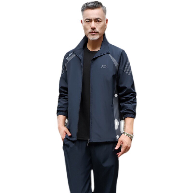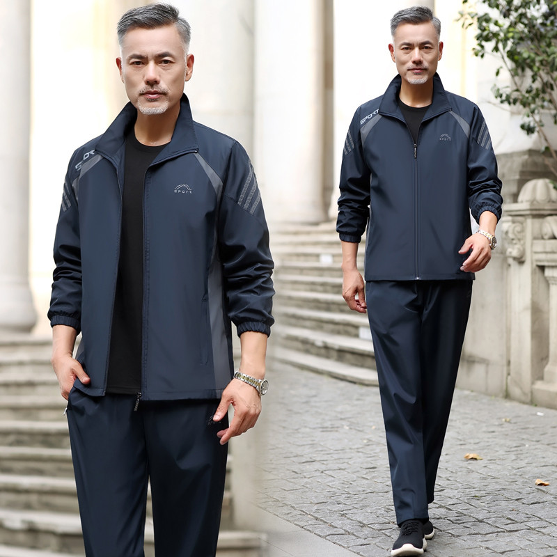 中老年爸爸春装运动服休闲外套男士大码中年宽松跑步卫衣三件套装