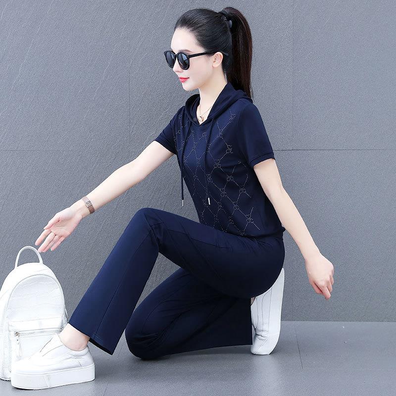 休闲运动套气女夏装季新款洋款冰丝薄显瘦减90579798龄短袖长裤两