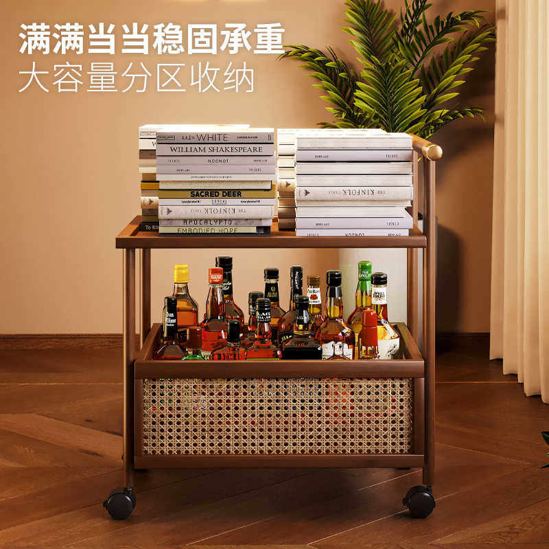 中古小推车客厅置物架落地可移动带轮零食收纳架简易竹木储物架子