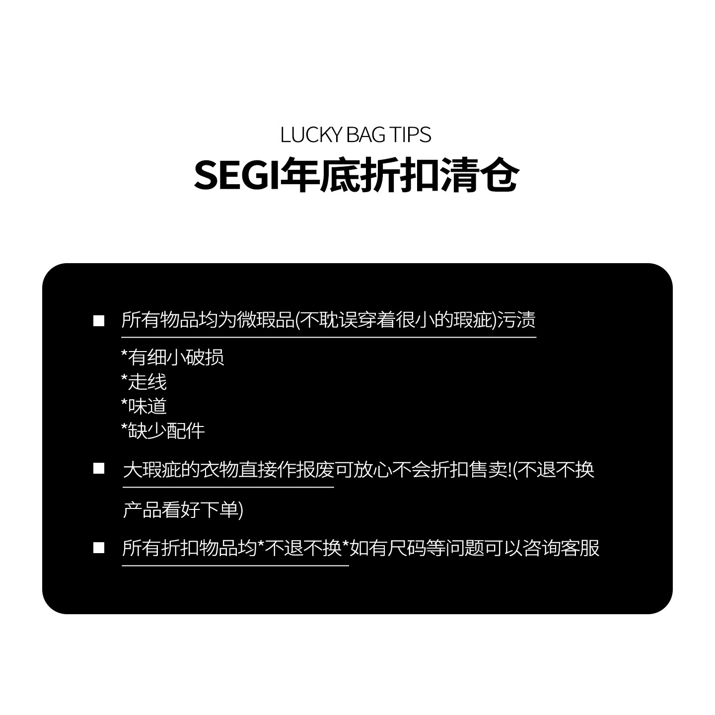 SEGI 品牌清仓 微瑕疵自选福袋 款式可选 低至3折 售完即止【1】