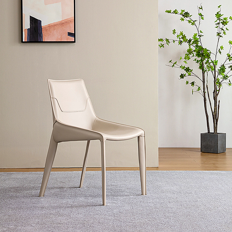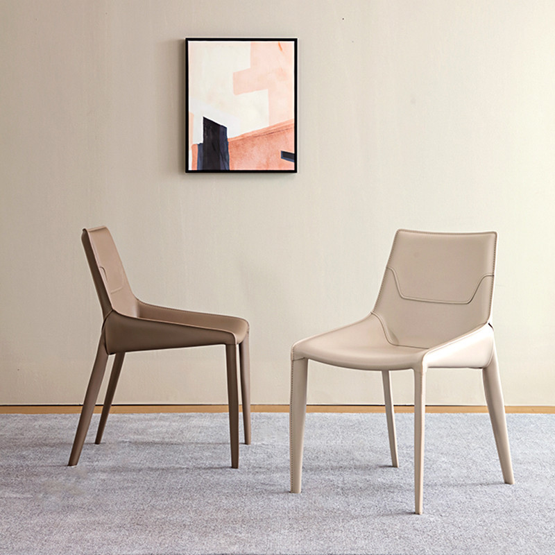 奶油风餐椅家用设计师凳子现代简约意式极简餐桌椅马鞍皮椅子轻奢