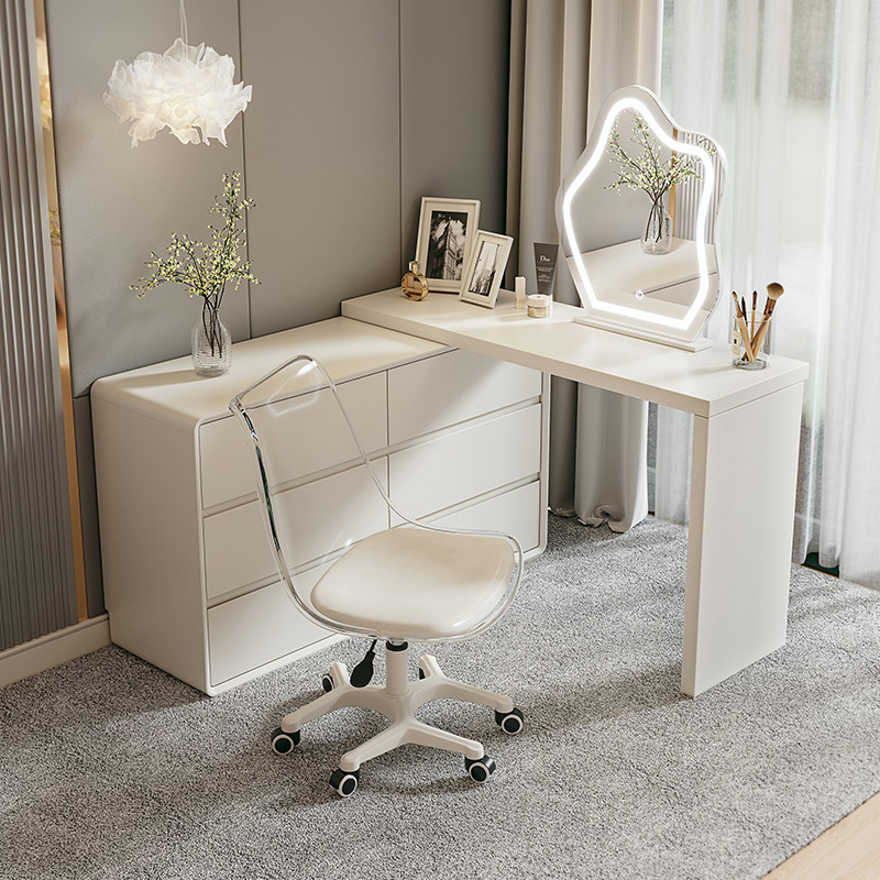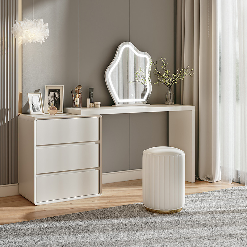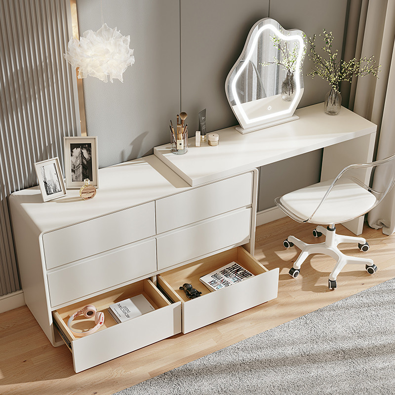 奶油风梳妆台卧室简约现代斗柜轻奢梳妆台一体全实木化妆台化妆桌