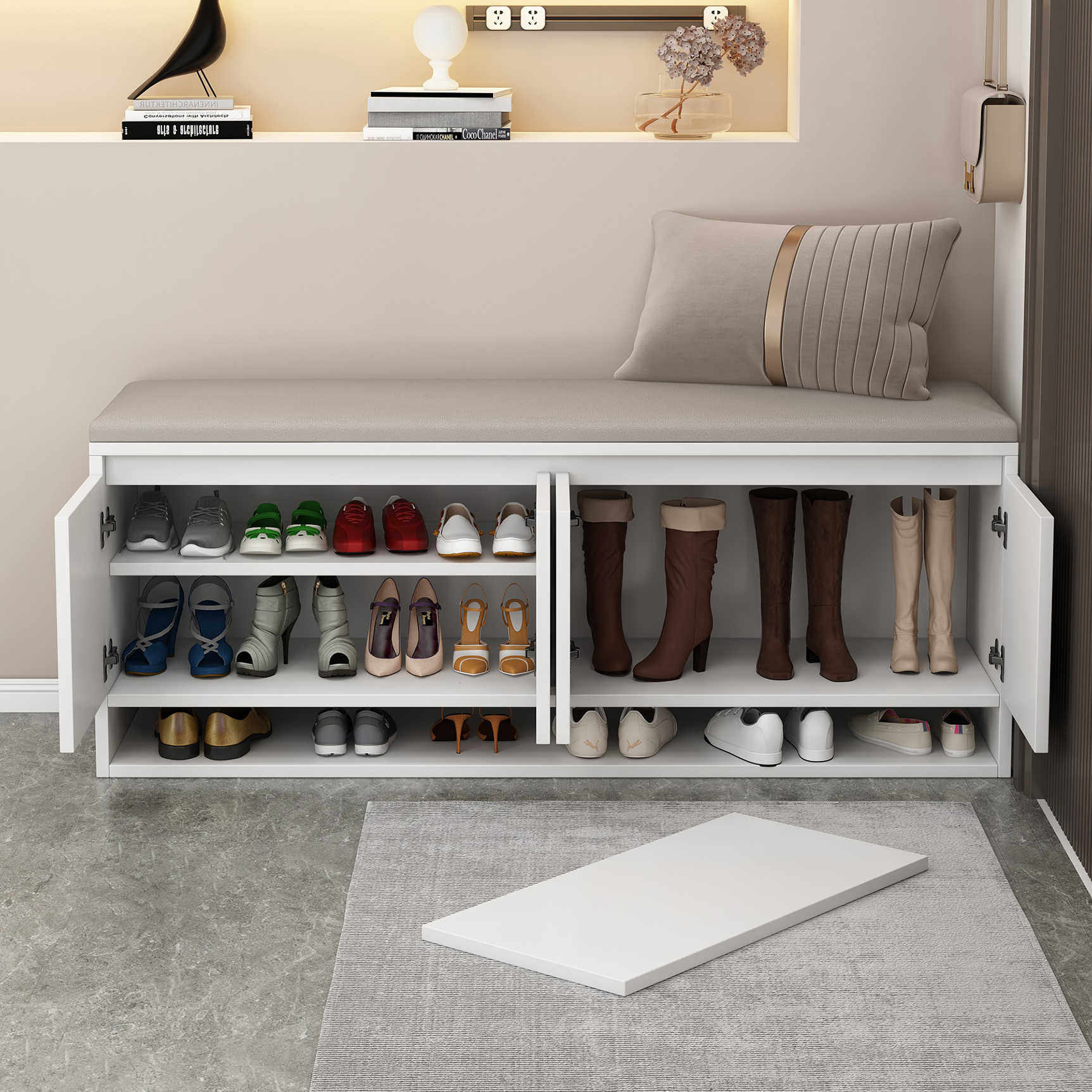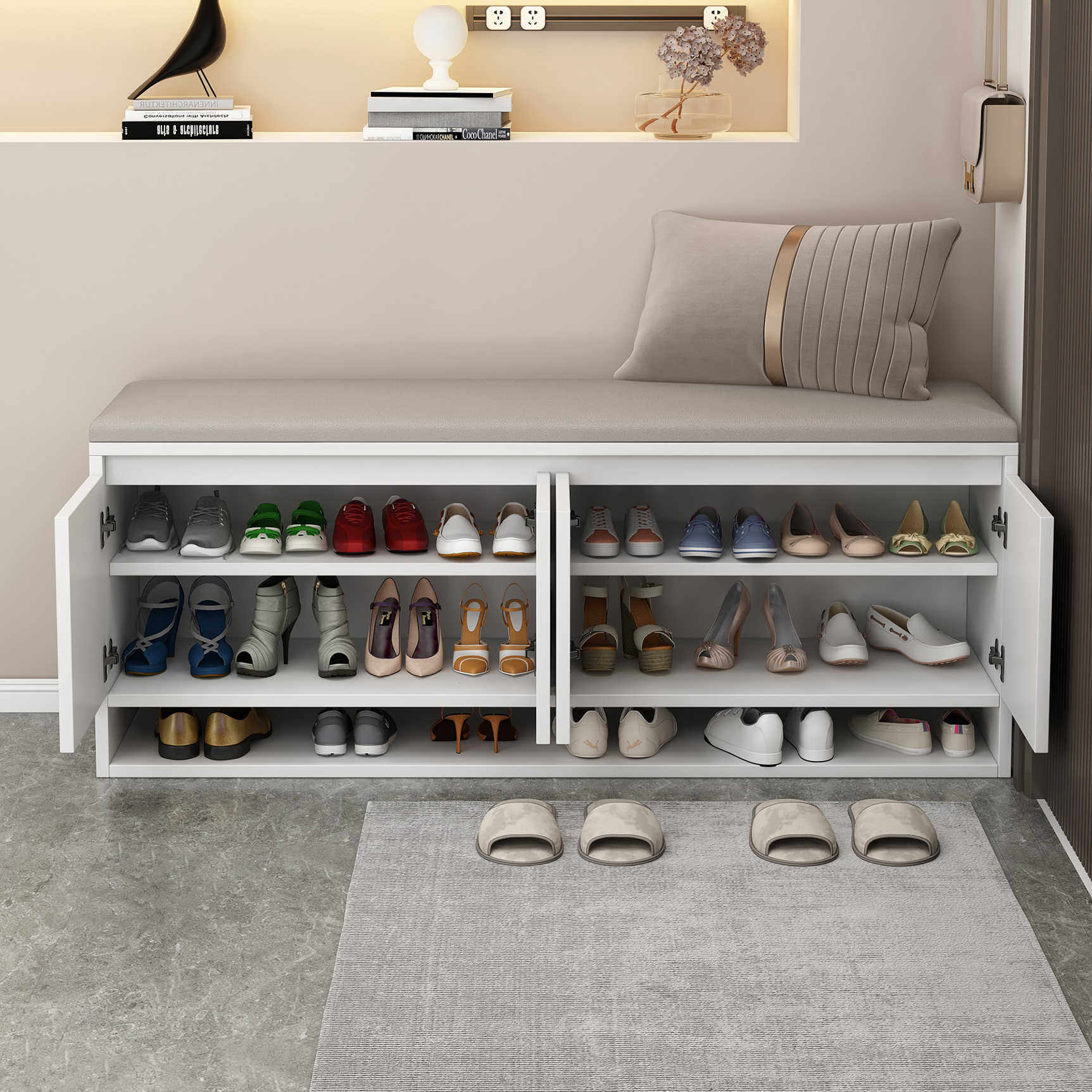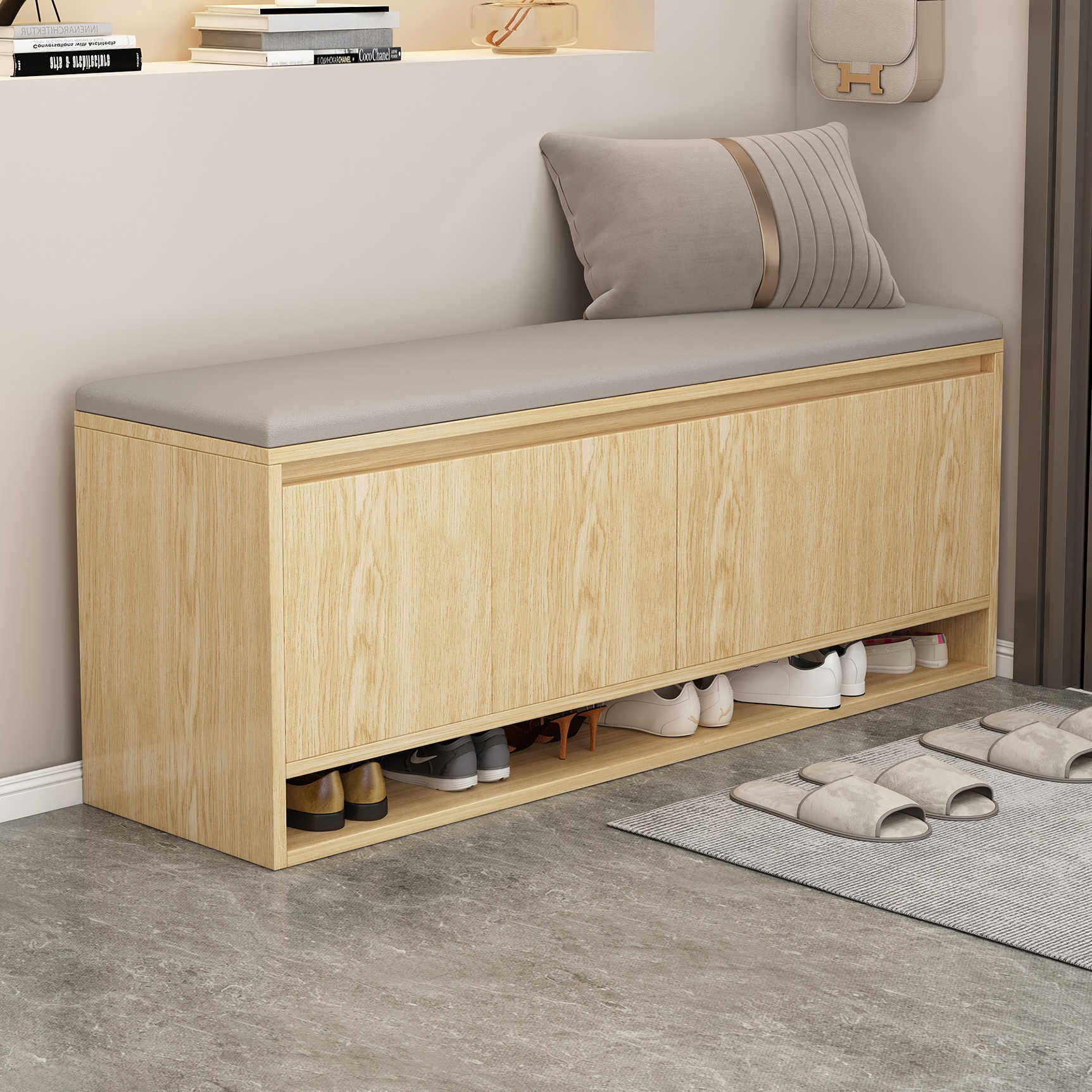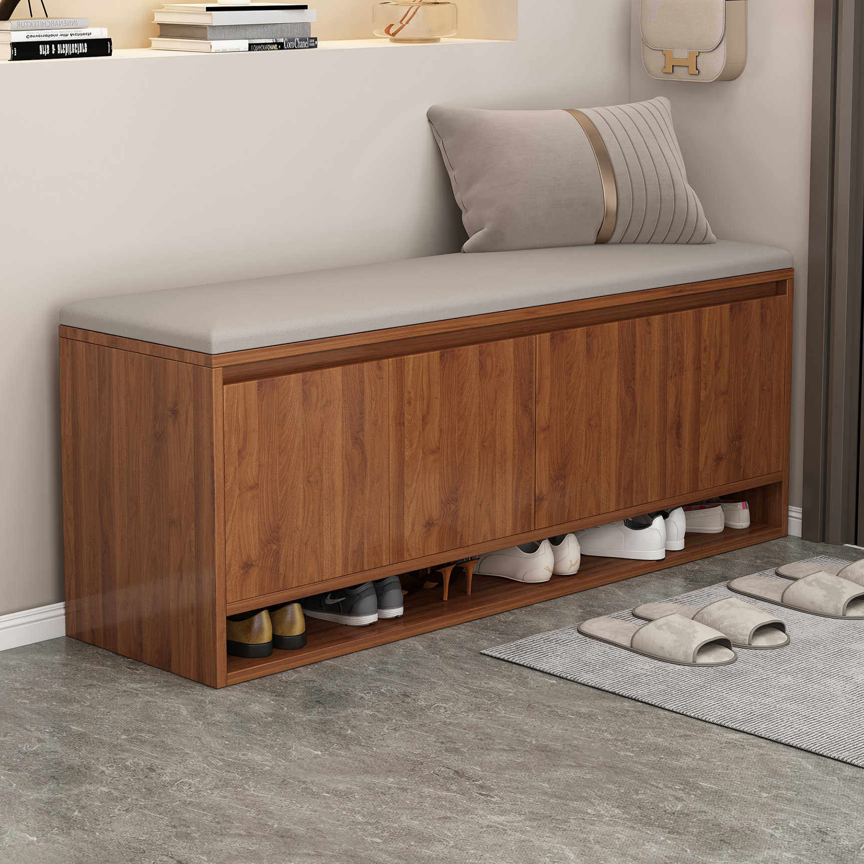 实木换鞋凳门口家用轻奢高级感鞋柜坐凳一体软包鞋架穿鞋凳进