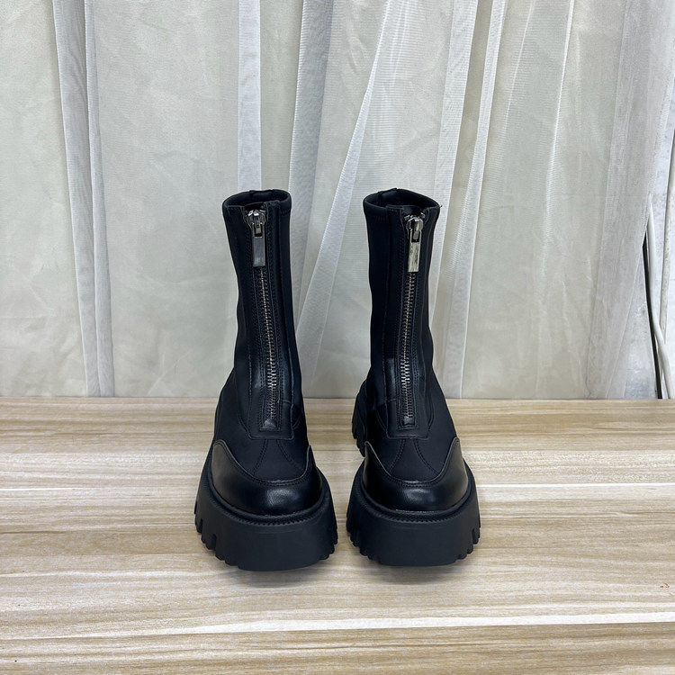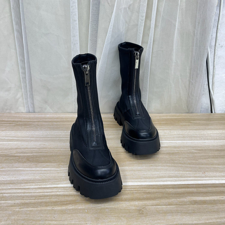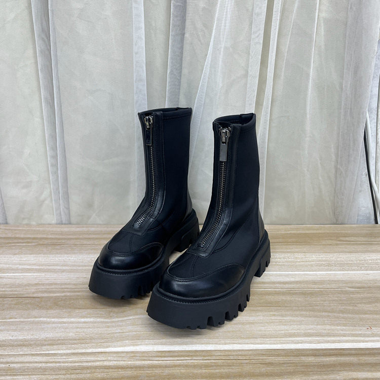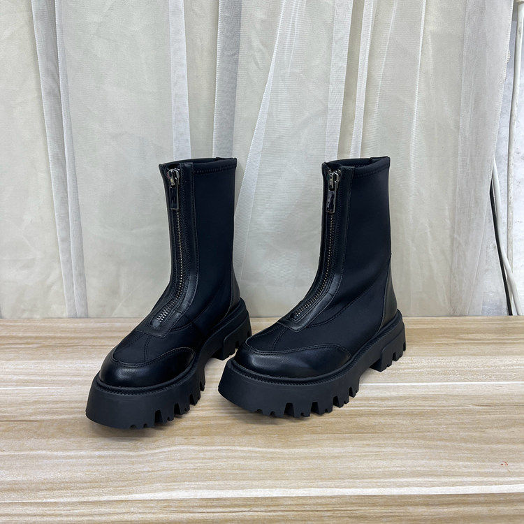 外贸原单女靴新款圆头厚底拼接拉链中筒纯色时尚舒适英伦风马丁靴