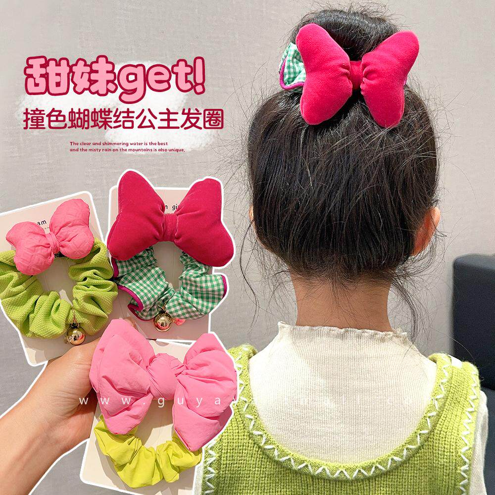 在逃公主~梅果酱蝴蝶结儿童发圈韩版撞色设计感女孩甜美发饰头绳