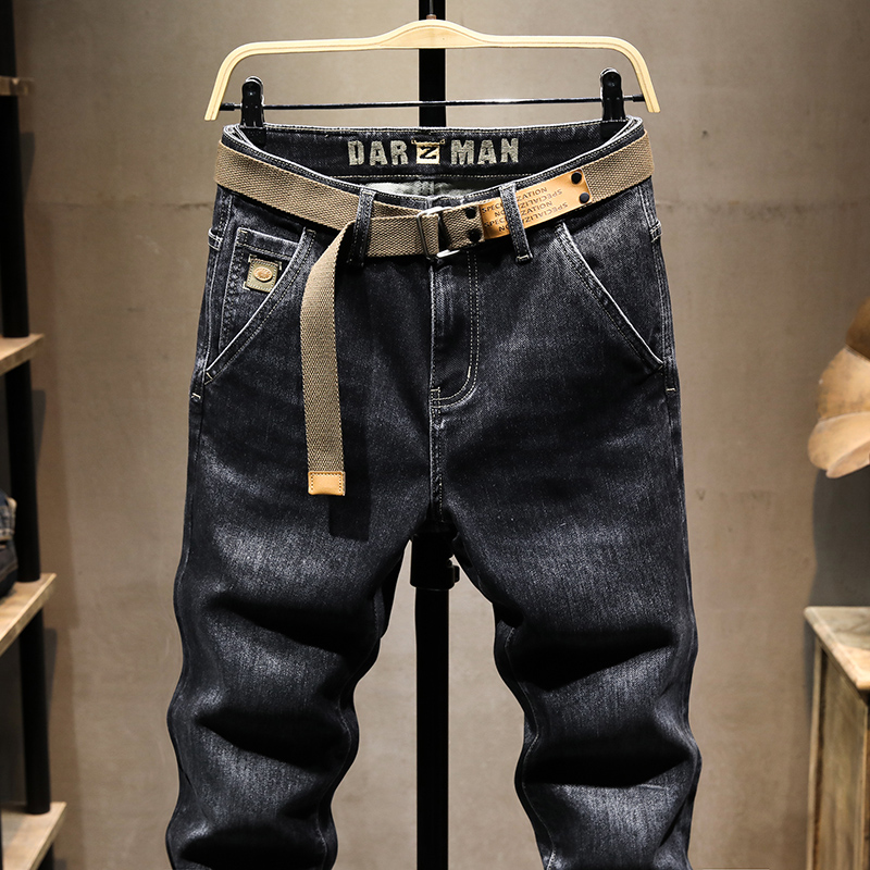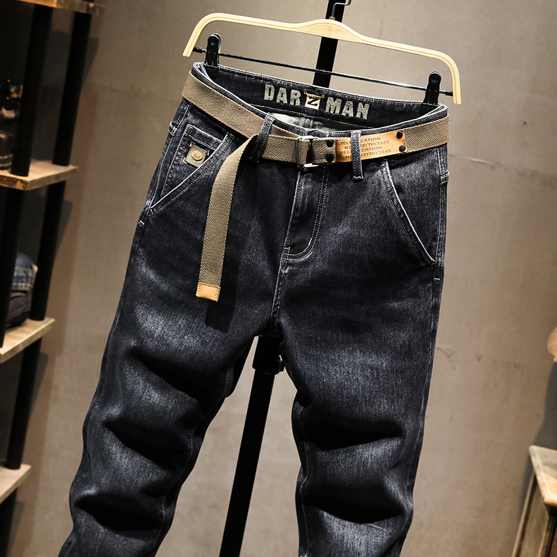 高街牛仔裤男款百搭新款修身小脚裤子潮牌男微哈伦长裤子秋冬季