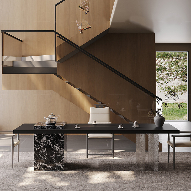 意式极简岩板茶桌椅别墅客厅设计师款亚克力功夫泡茶桌待客桌组合