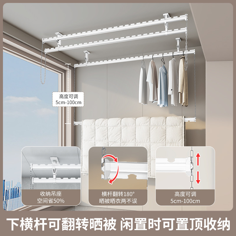 包安装侧面晾衣架阳台家用上下双层晾衣杆墙上固定悬挂式吊杆顶装