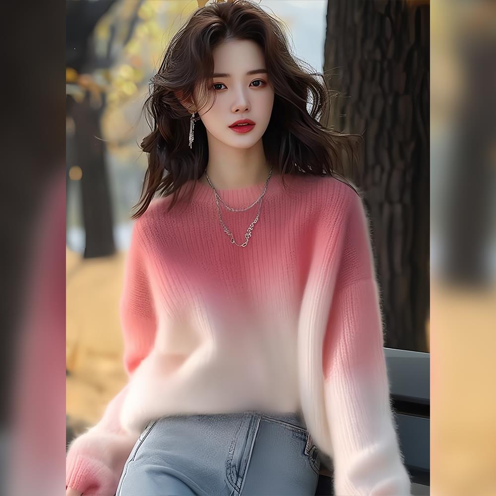 多巴胺粉白色渐变针织软糯毛衣女2025新款深秋初冬季温柔慵懒上衣