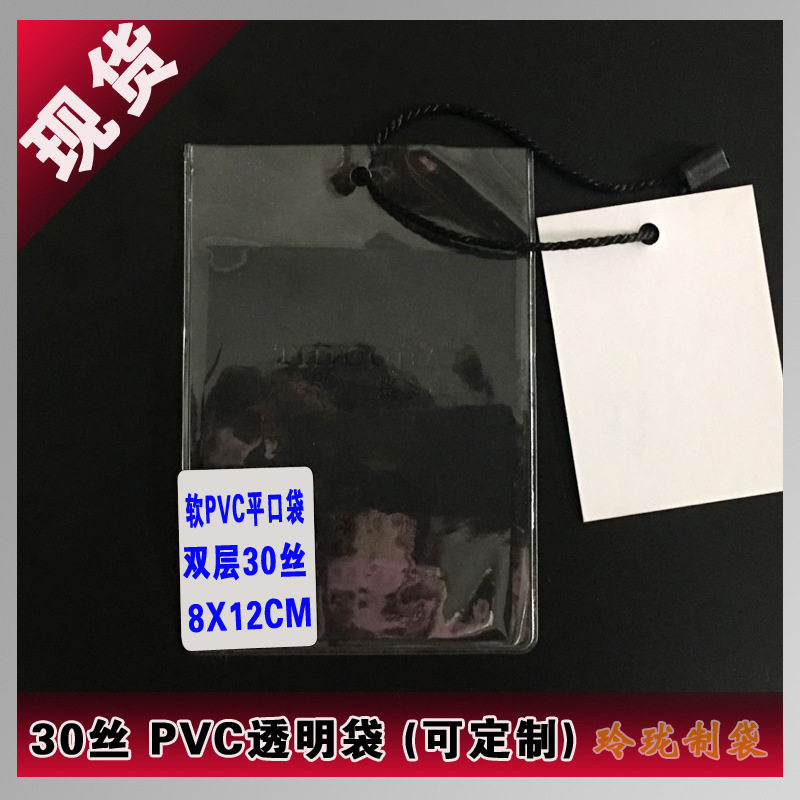 现货透明平口吊牌袋OPP硬PVC袋子定订服装标签套袋制做塑料袋