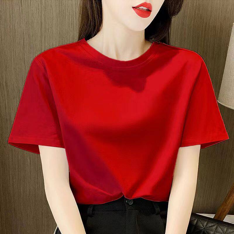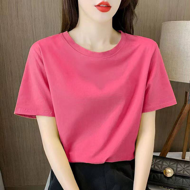 品牌纯棉粉色短袖t恤女2026新款丅恤中年夏季上衣夏款半袖打底衫
