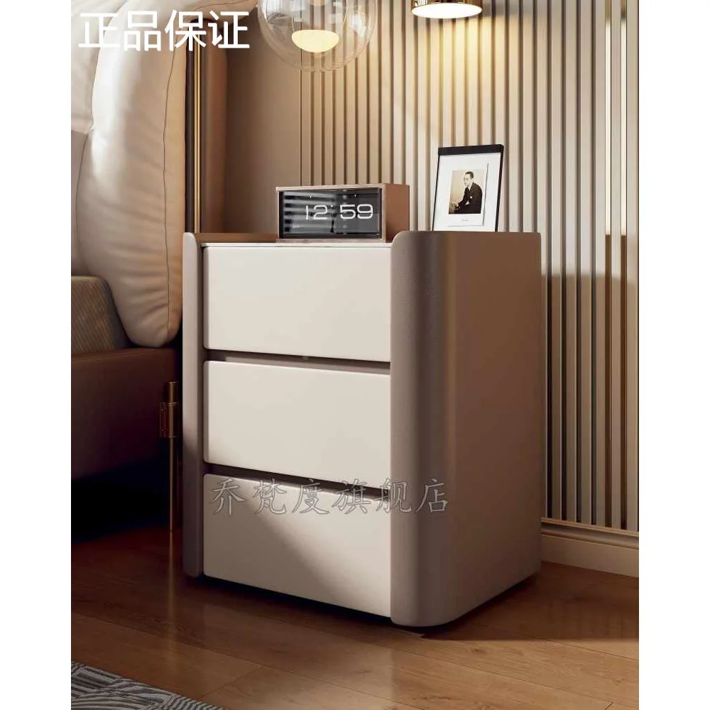 意式极简三层床头柜轻奢实木感简约高级现代卧室岩板床边柜新品