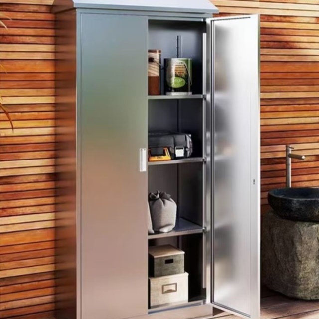 定制304不锈钢庭院室外阳台收纳家用工具保洁柜子带锁户外储物柜