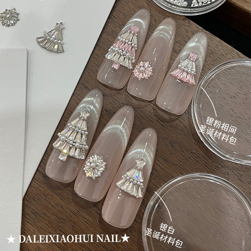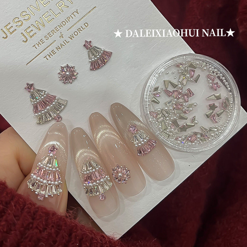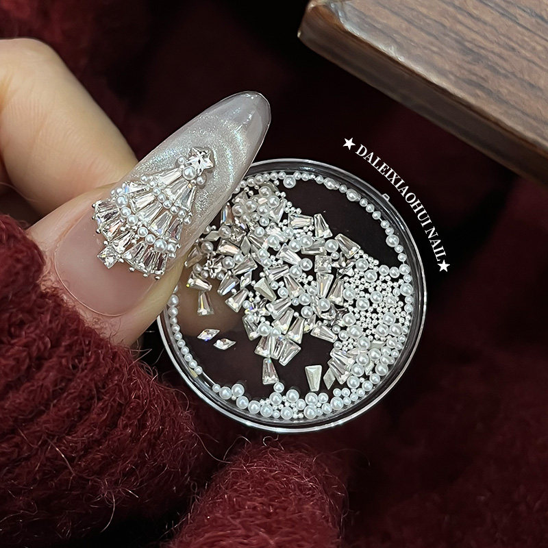 美甲圣诞锆石拼钻材料包网红新款混装珍珠碎钻钢珠爆闪指甲装饰品