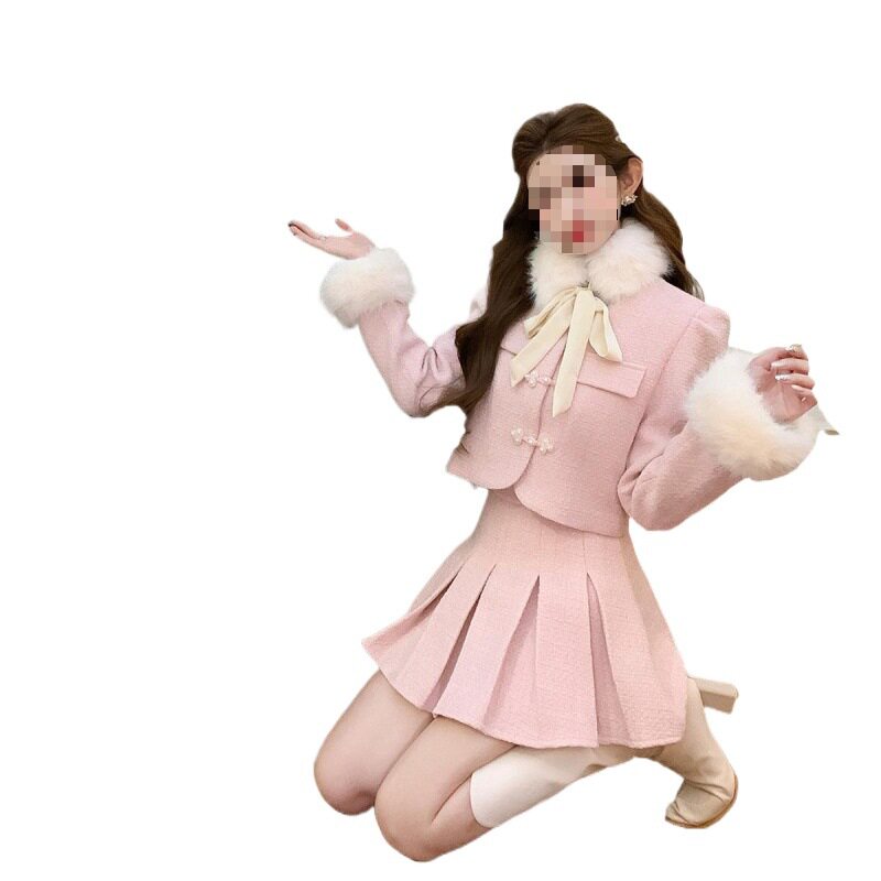 首页> 女装> 小洋装名媛高端今年流行漂亮羽绒小香风套装裙秋冬百褶短裙两件套