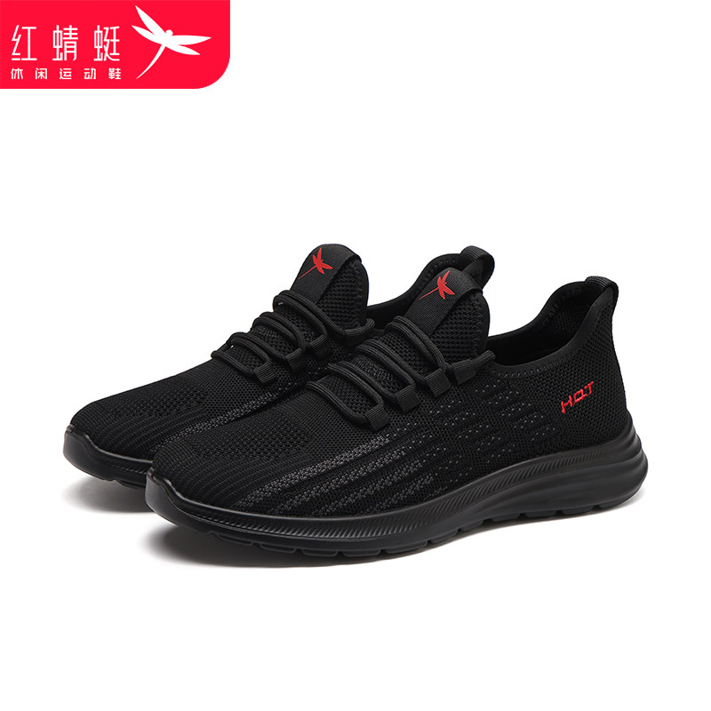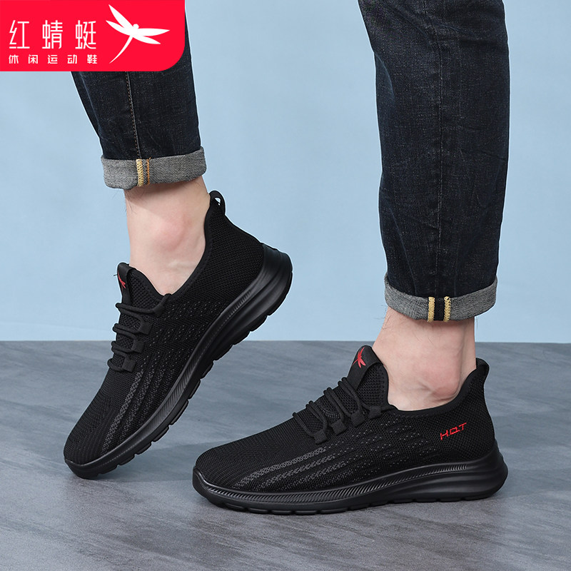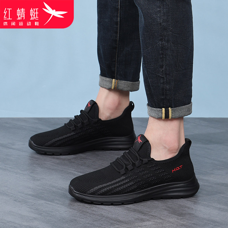红蜻蜓男飞织运动鞋夏季网面鞋子轻便软底防滑跑步休闲鞋特卖透气