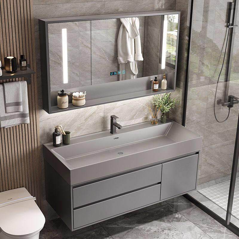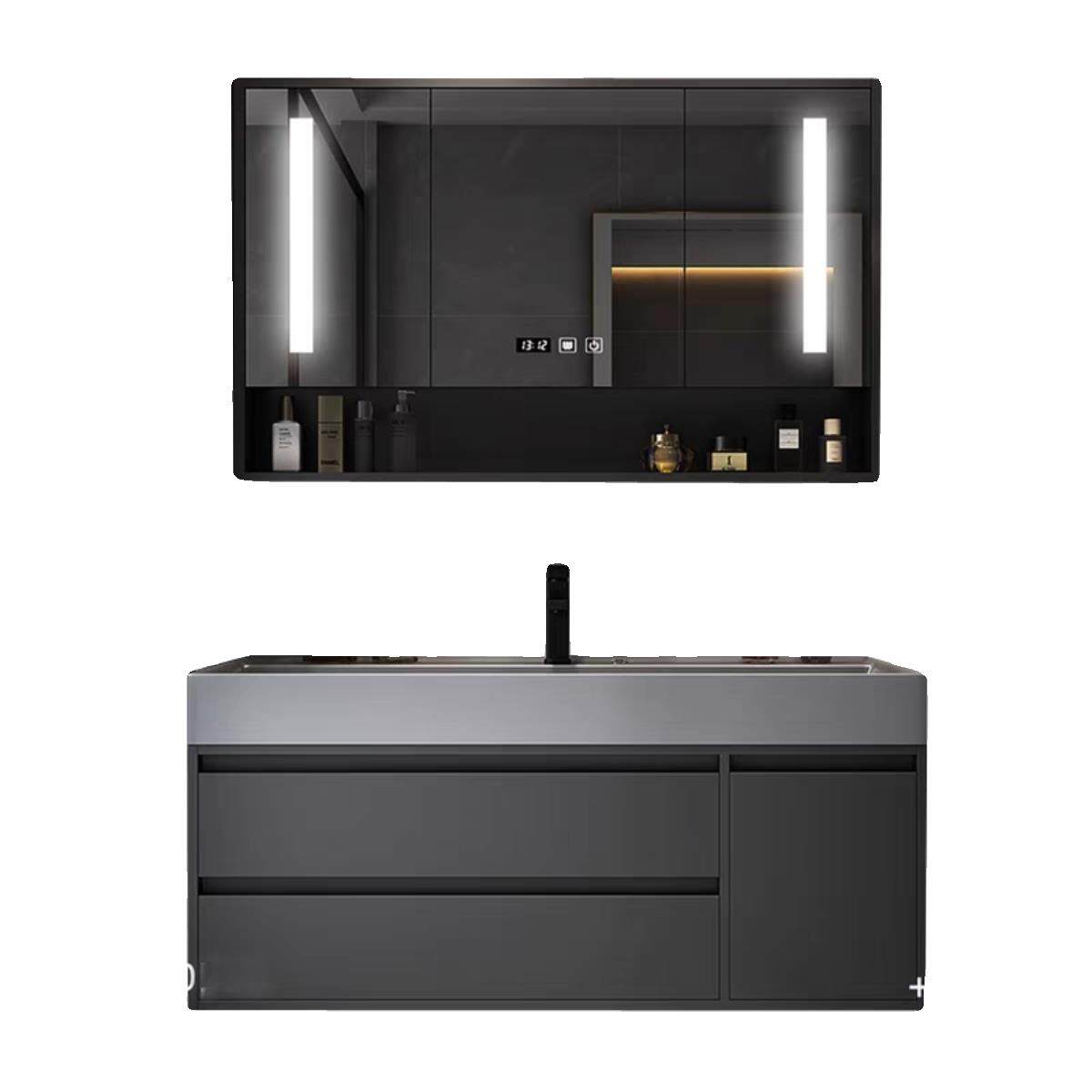 轻奢浴室柜现代简约化妆室岩石一体盆洗脸盆柜组合智能镜柜洗漱台
