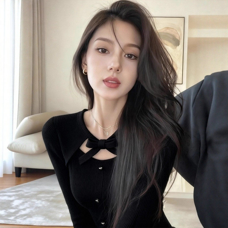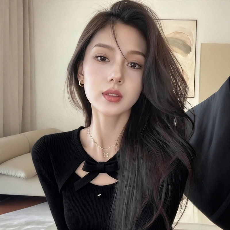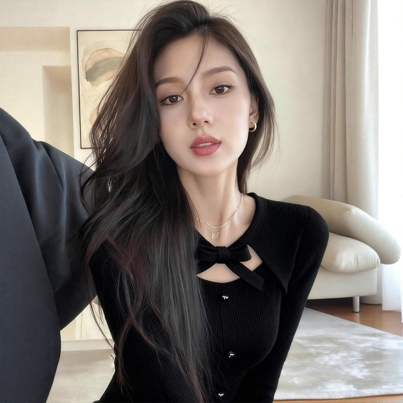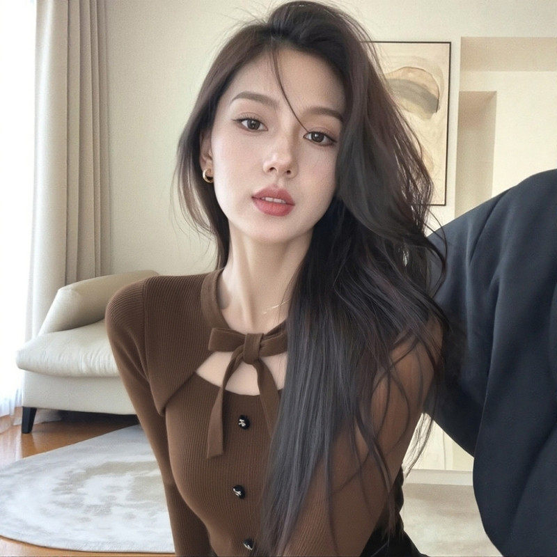 首页> 女装> 灰色蝴蝶结系带假两件针织衫女秋冬高级感修身毛衣内搭打底衫上衣