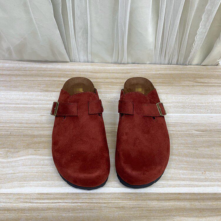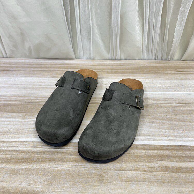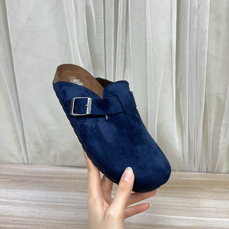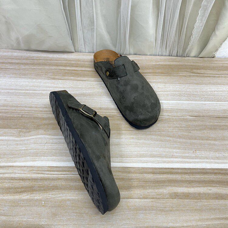 Lady Shoes外贸原单女鞋微瑕时尚圆头纯色平底包头皮带扣博肯半拖