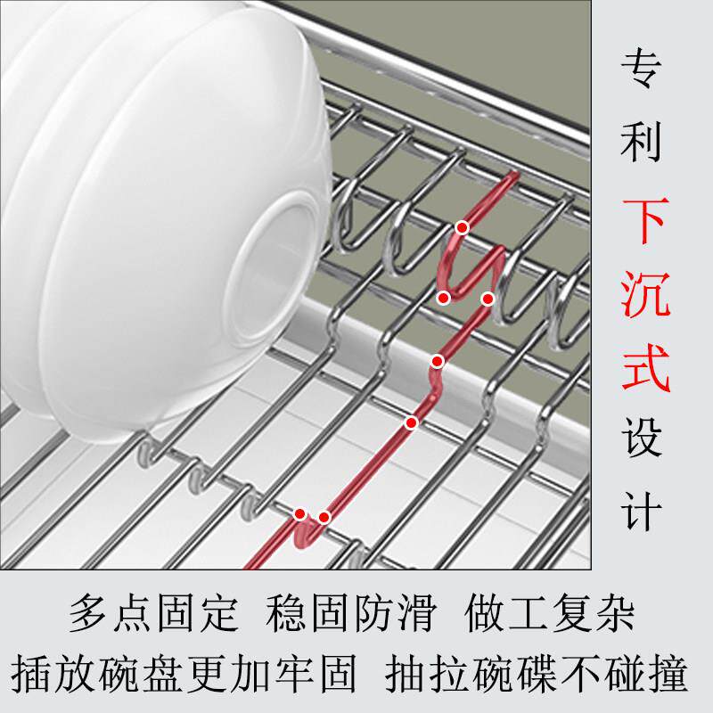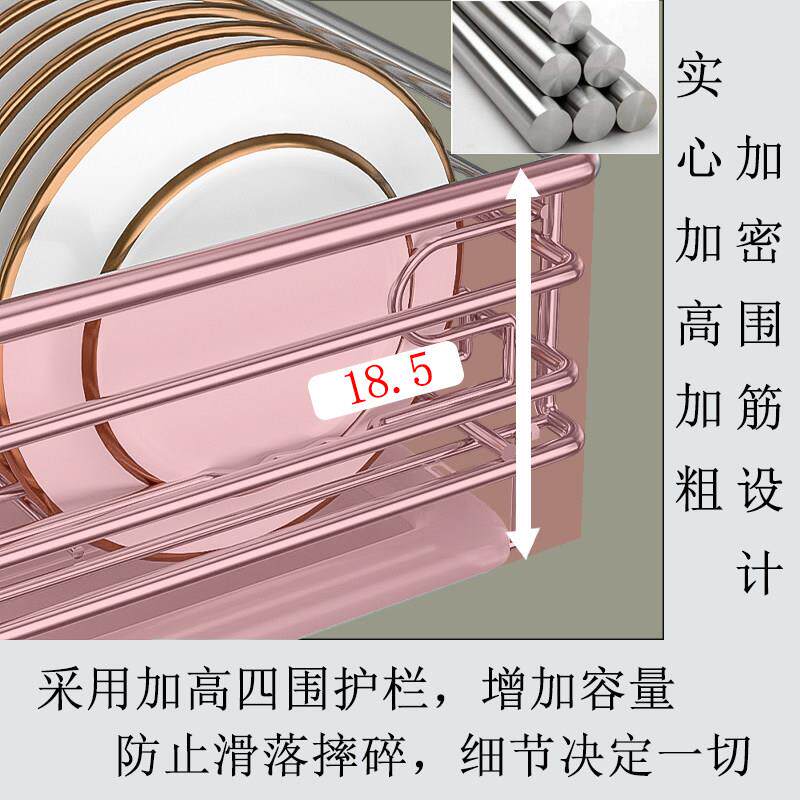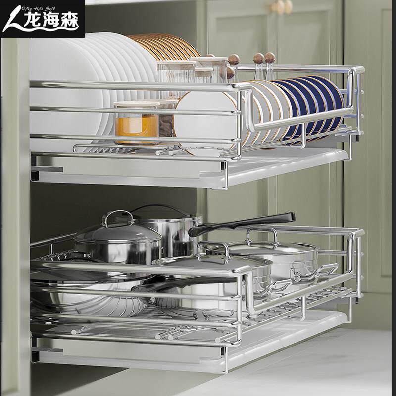 龙海森厨房整体橱柜拉篮304不锈钢阻尼双层加厚碗碟拉蓝调味篮